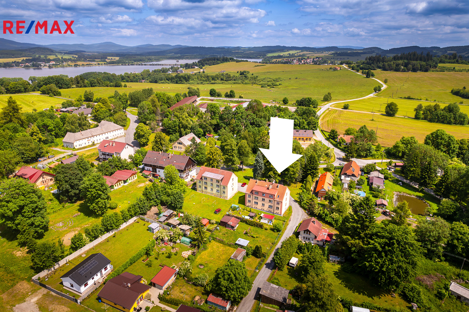 Přednost bytu přestavuje především blízkost přírody – užívejte si procházky k jezeru, cyklovýlety po Šumavě nebo zimní radovánky na svahu. Byt se nachází ve zvýšeném přízemí, které nabízí klid a soukromí, obklopeno zelení. Díky modernímu kotli a zateplení jsou náklady na energie opravdu nízké.