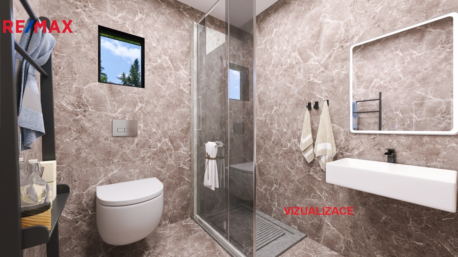 Technologie: vytápění i ohřev vody zajišťuje úsporný elektro kotel s podlahovým topením. Bezklíčový vstup do objektu (vhodné ke krátkodobému pronájmu).