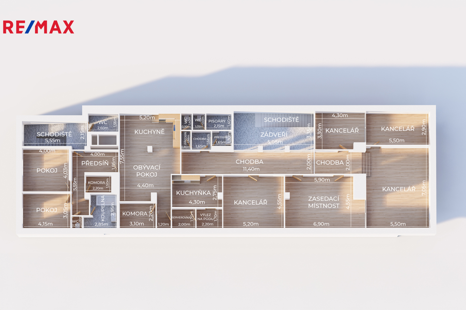 Celková užitná plocha činí 833,05 m², z toho: