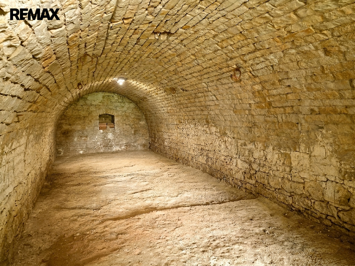 Kromě toho se na pozemku nachází kamenný sklep zasazený do svahu – ideální pro uskladnění úrody nebo vína. Zahrada má několik různých částí, kombinuje okrasnou i užitkovou část. Nechybí nově zbudovaná krytá pergola s posezením, bazén, rybníček, skleník, ani pečlivě udržované trávníky. V zadní části pozemku rostou vzrostlé ořešáky, které dotvářejí malebný obraz celého místa.
