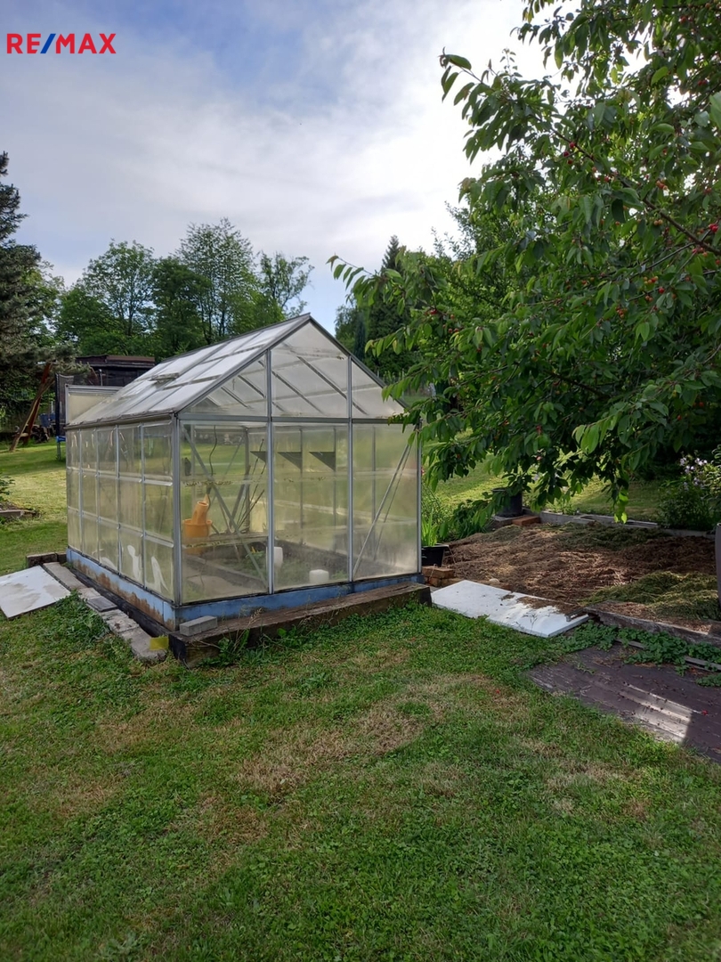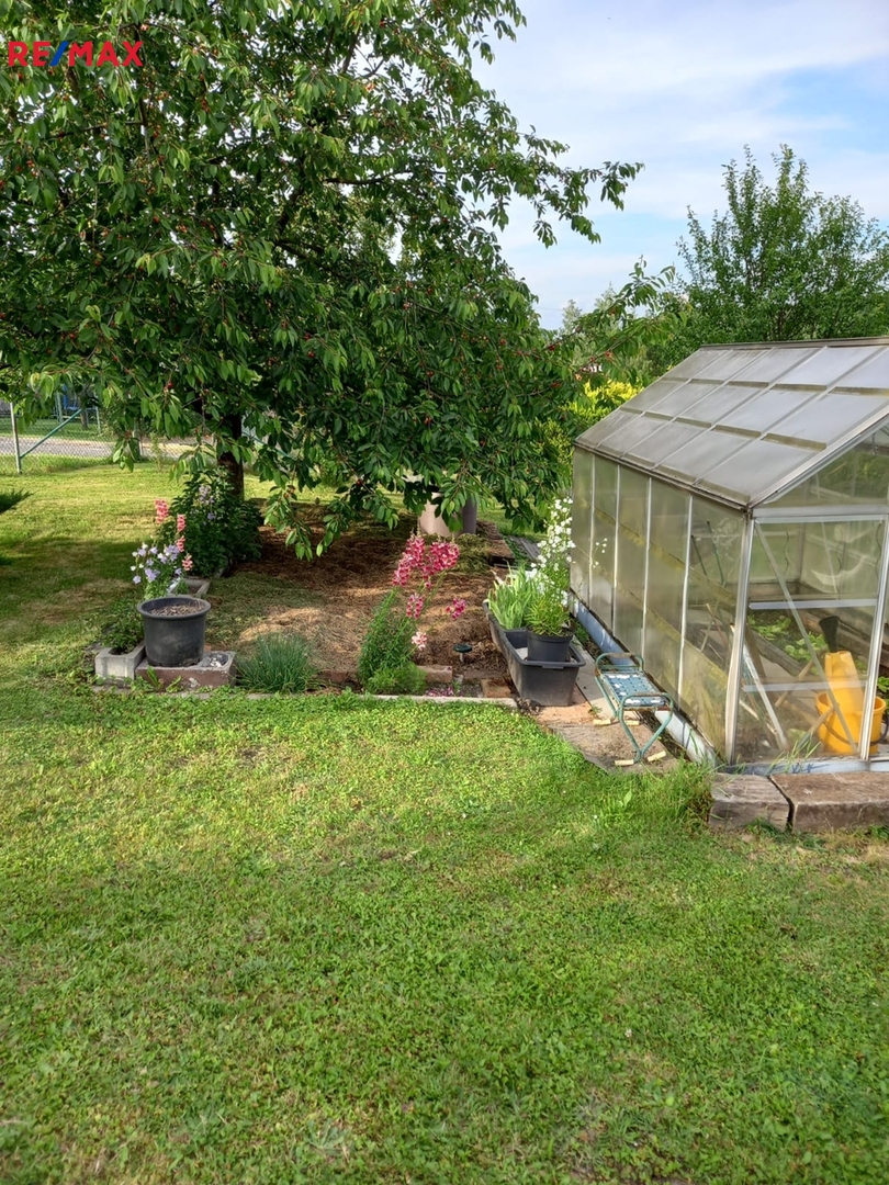 Ve skleníku si vypěstujete sladká rajčata, a na zahradě sklidíte třešně, švestky, jablka, ryngle, lískové oříšky, angrešt nebo justu. Zkušené zahradnice potěší ranní káva s výhledem na skalku, děti pak ocení trampolínu, která zůstává součástí vybavení.