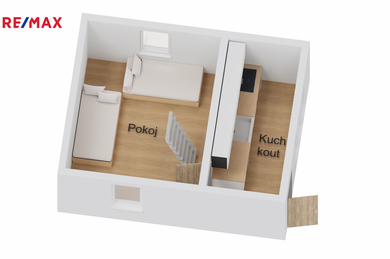 V chatce je zavedena elektřina a voda, která se na zimu uzavírá. Topení je možné elektrickými přímotopy. V přízemí se nachází oddělený kuchyňský kout a hlavní obytná místnost, ze které vedou schody do podkroví, kde se pohodlně vyspí dvě osoby.