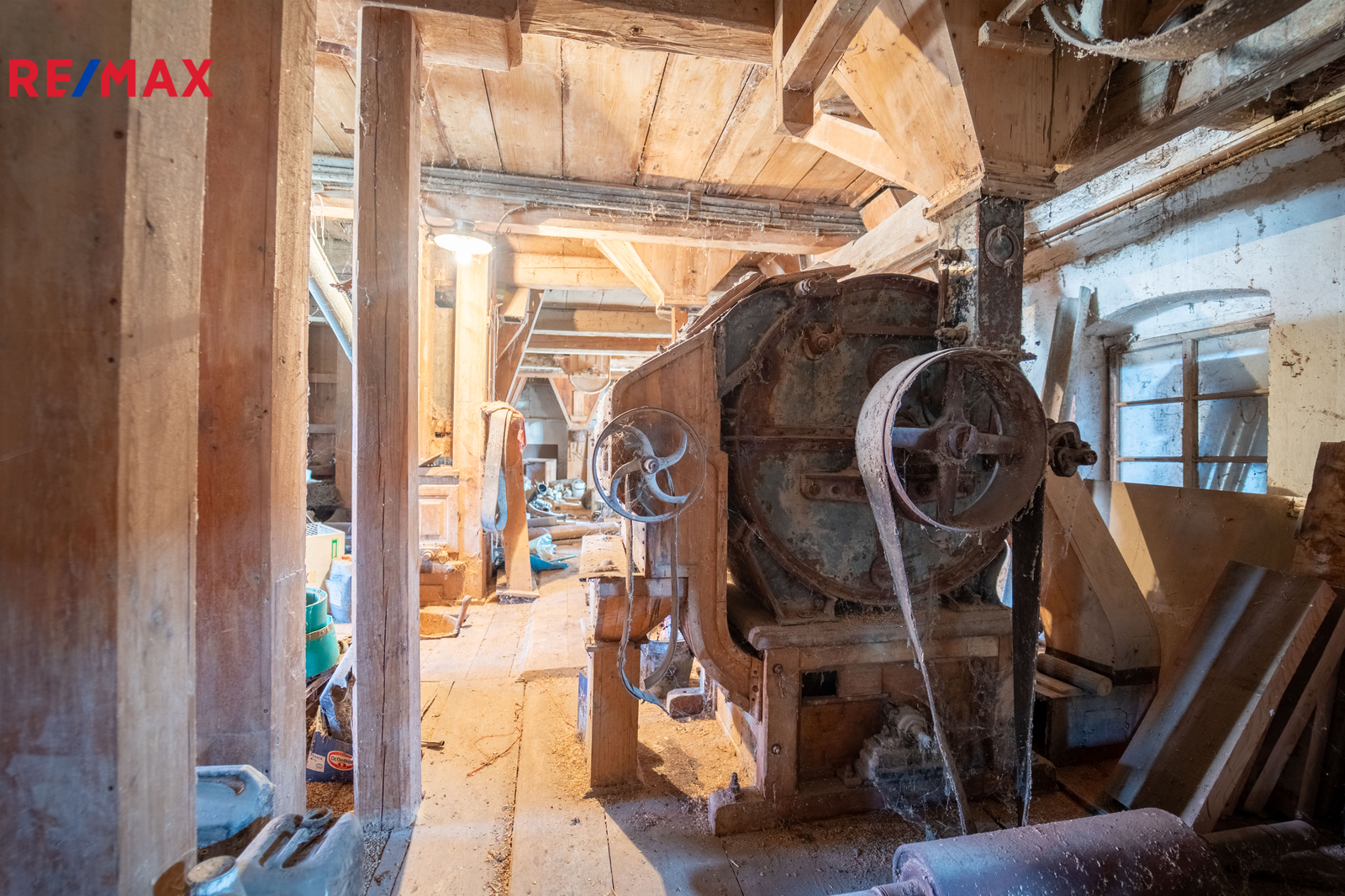 Opravdový poklad! Historický, funkční mlýn s Francisovou turbínou. Součástí prodeje je převoditelné vodní právo na dalších 85 let, což představuje nejen hodnotu, ale i energetickou soběstačnost a potenciální příjem. V roce 1919 byl pohon mlýna vodním kolem zaměněn za pohon elektřinou vlastní výroby.