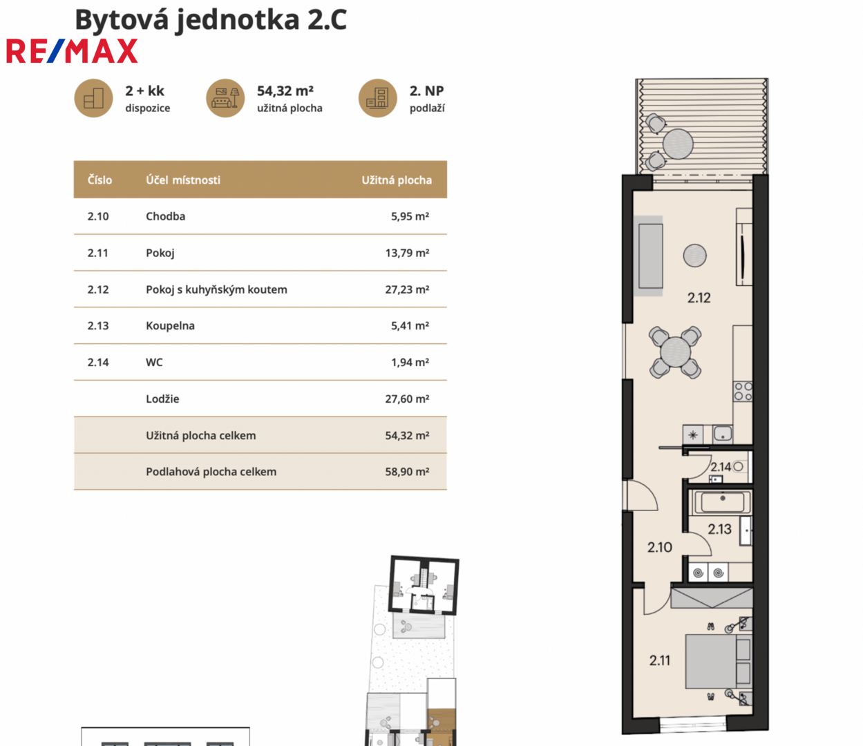 Nabízíme Vám k prodeji byt 2kk s lodžií, moderní bydlení v klidné čtvrti s výbornou dostupností do centra Brna. Užitná plocha je celkem 54,32 m².