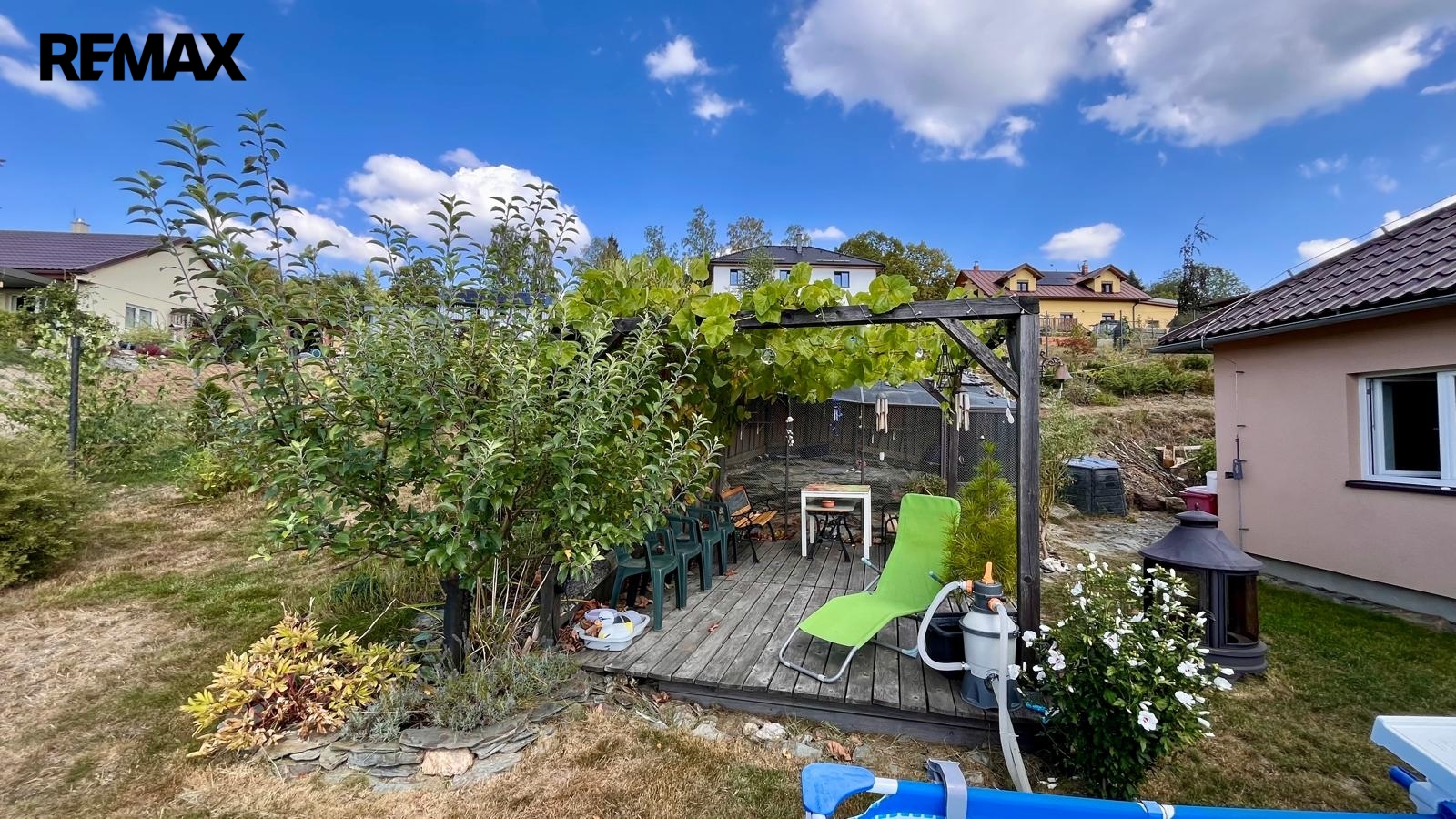 Pozemek o výměře 1 233 m² poskytuje dostatek prostoru pro rodinný život. Děti zde mohou bezpečně běhat po zahradě, vy můžete zahradničit, relaxovat nebo vytvořit příjemné venkovní posezení. Na pozemku je již připravena příprava na terasu včetně základního materiálu a také prostor pro vybudování přírodního jezírka.