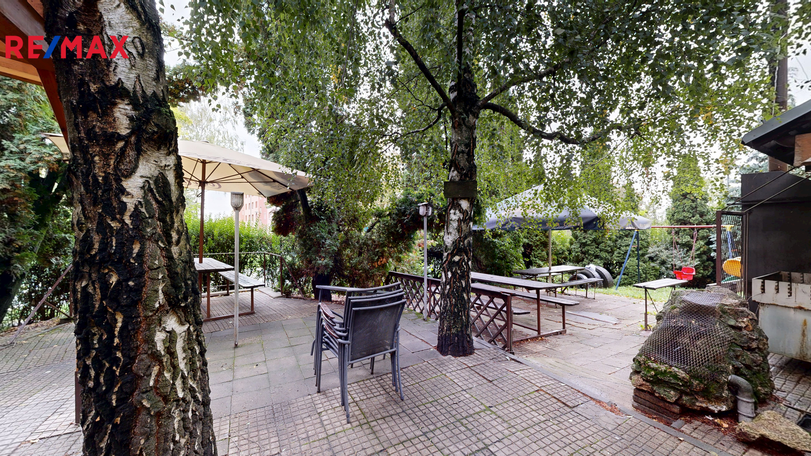 V přízemí je stylová pivnici-90míst, s kuchyní, zastřešenou venkovní zahrádku-150míst,s dětským koutkem vč. zázemí ke grilu a udírně.