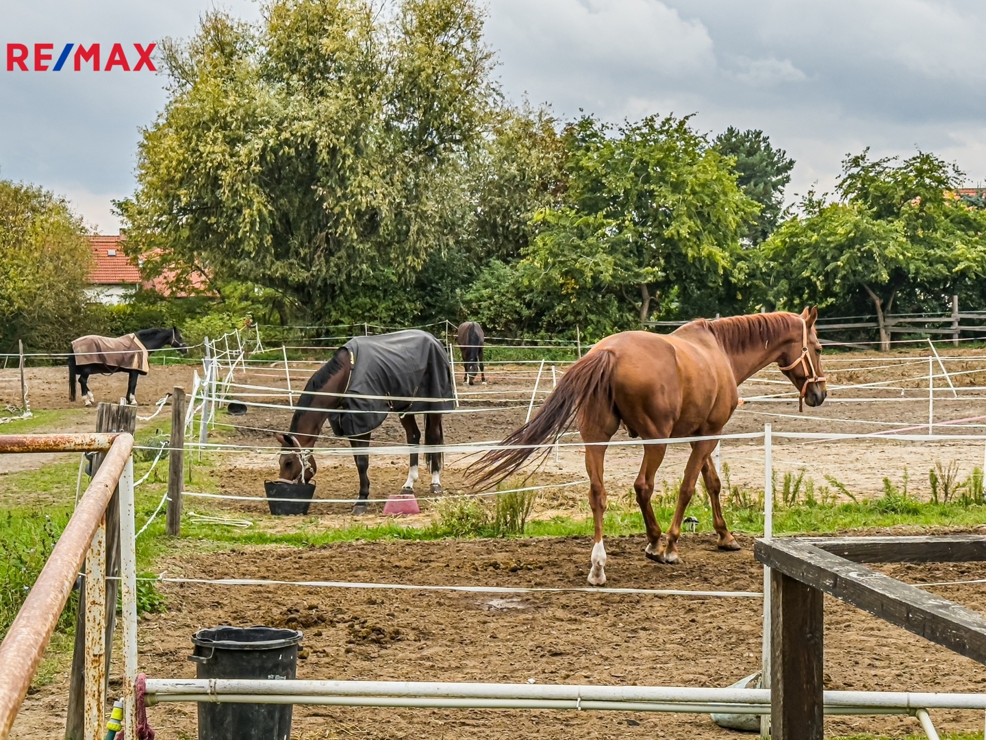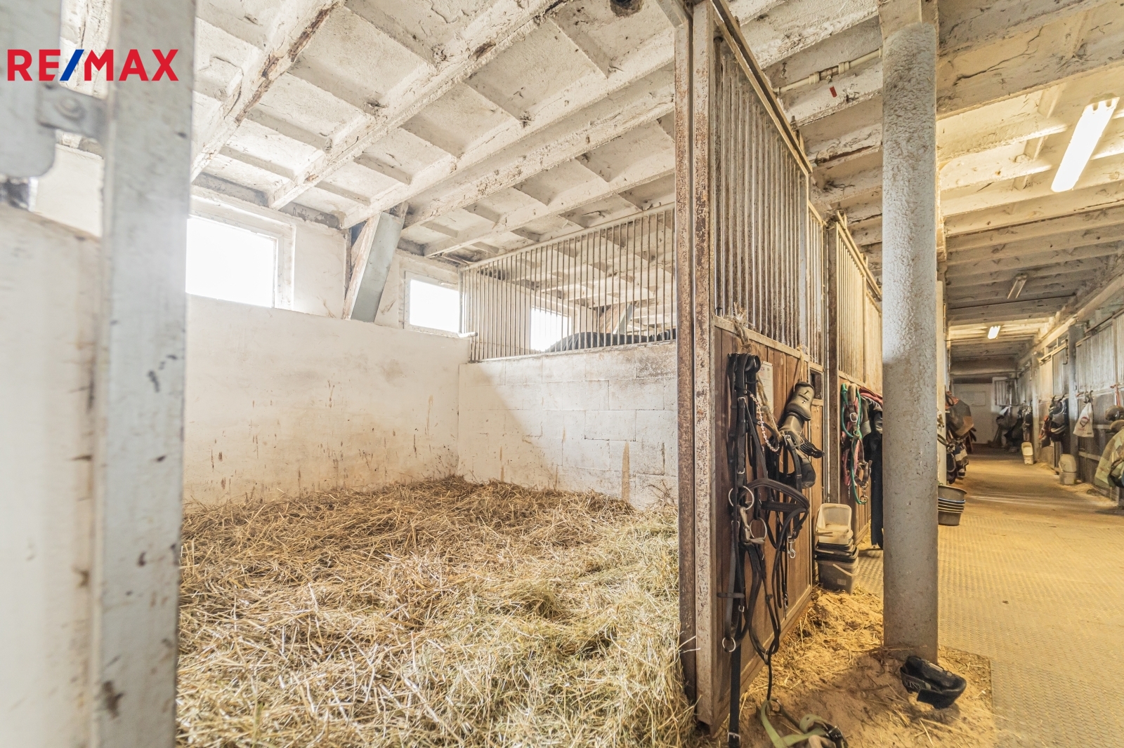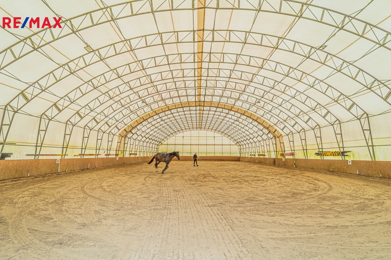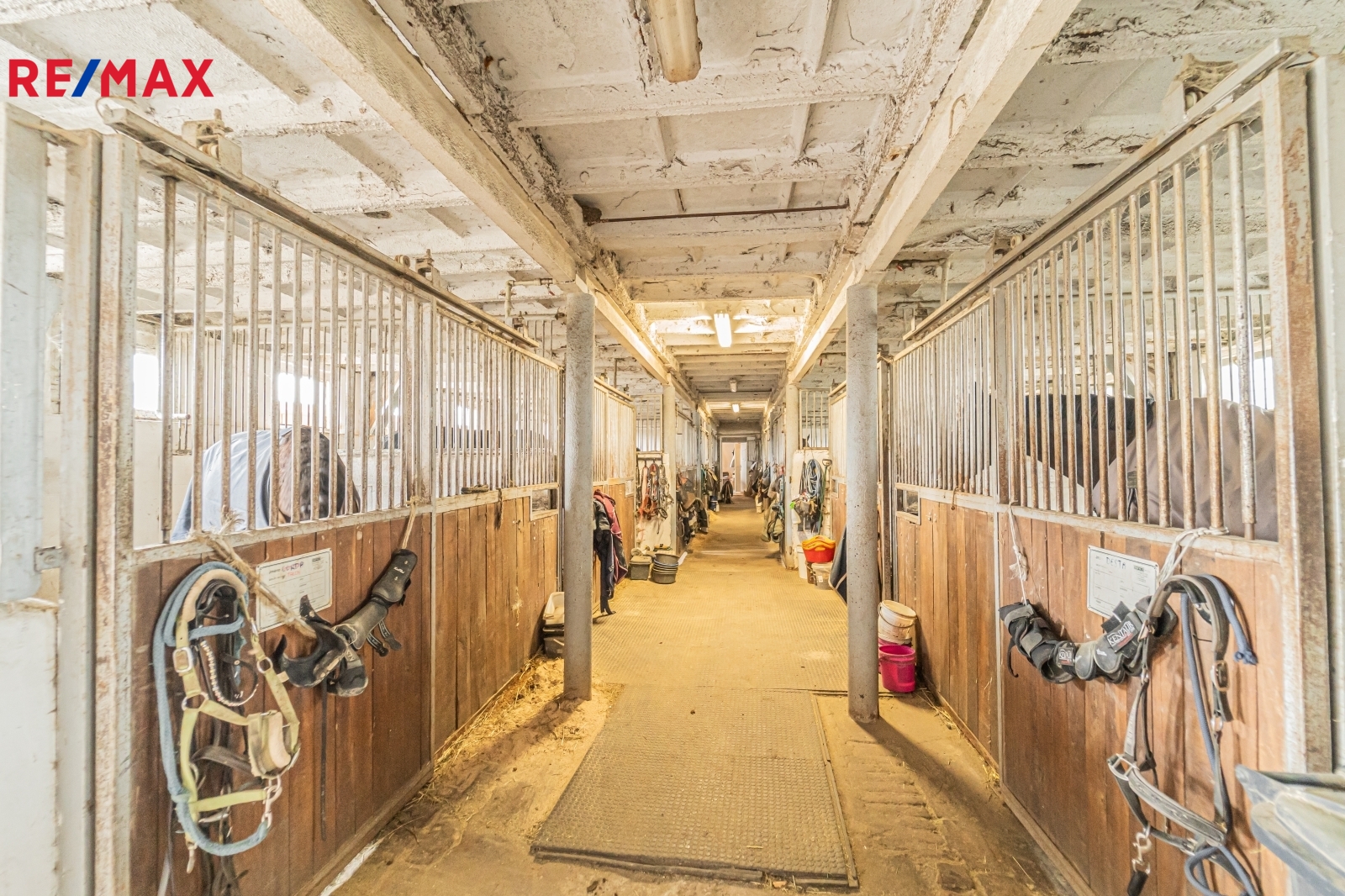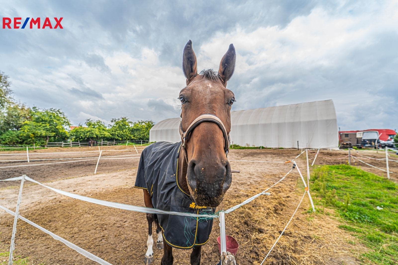 Nabízíme exkluzivně k prodeji jedinečný jezdecký areál o celkové výměře 12 480 m² v obci Chlumín, okres Mělník. Tento komplex je ideální pro milovníky koní i rodiny hledající klidné bydlení s přírodou na dosah Prahy a Mělníka. Areál zahrnuje 26 boxů pro ustájení koní, krytou jezdeckou halu s moderní ocelovou konstrukcí, prostorné kolbiště s pískovým povrchem, kruhovku, pronajaté travnaté výběhy o rozloze cca 1,2 ha s elektrickým ohradníkem, dřevěným přístřeškem a napáječkou.