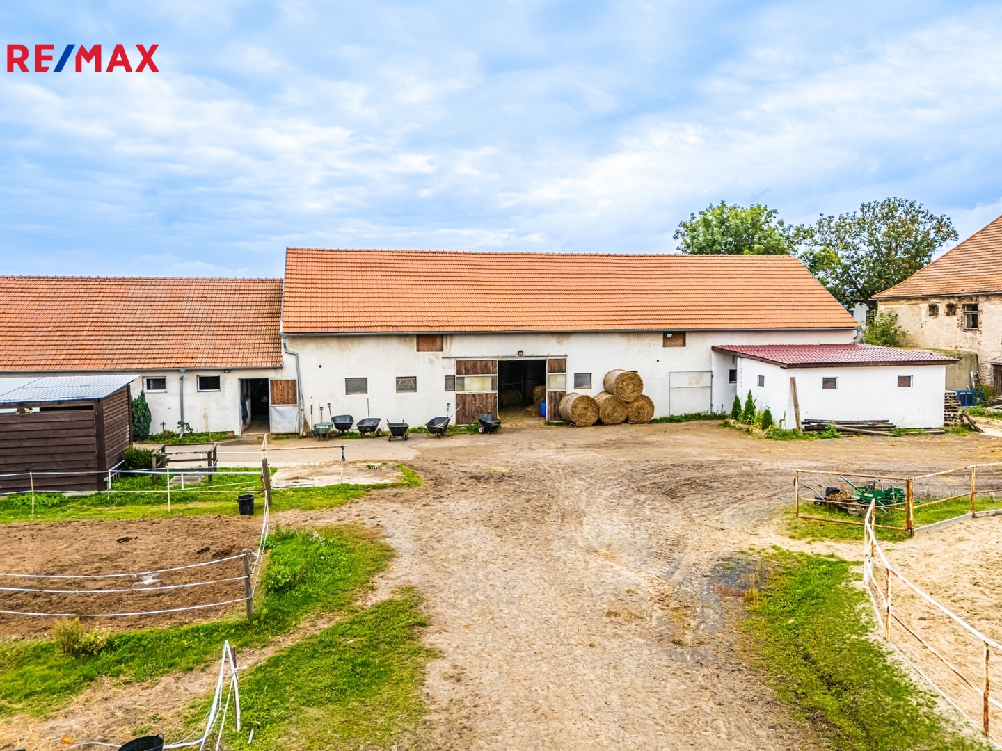 Součástí je dvougenerační rodinný dům ve velmi dobrém stavui s bytovými jednotkami 2+1 a 3+1, samostatnými vchody a vlastní zahrádkou. Moderní plynové vytápění, elektřina 220/380 V, obecní vodovod a kanalizace zajišťují komfortní bydlení i možnost kombinace bydlení s podnikáním. K dispozici jsou dále doplňkové objekty včetně menšího domu a velké zemědělské stavby s kompletním zázemím pro stájníka, klubovnou se společenským posezením a vytápěním krbovými kamny.