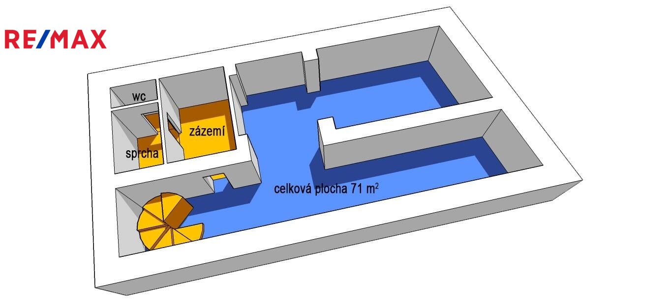 Prostor je rozdělen do dvou úrovní – přízemí o velikosti 50 m² slouží jako hlavní obchodní plocha s přímým vstupem z ulice Novobranská, zatímco spodní část ve sklepení (71 m²) nabízí zázemí, sklad nebo doplňkový prostor pro provoz. Díky tomuto členění je prostor vhodný pro širokou škálu využití – butik, kavárnu, kosmetické studio, showroom nebo kancelář s prezentačním prostorem.