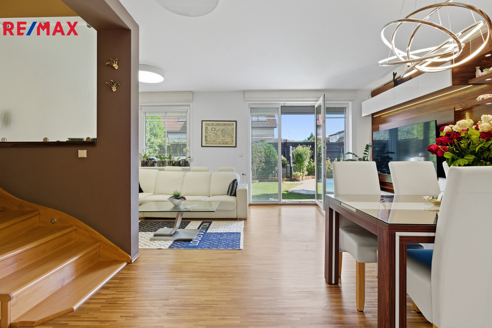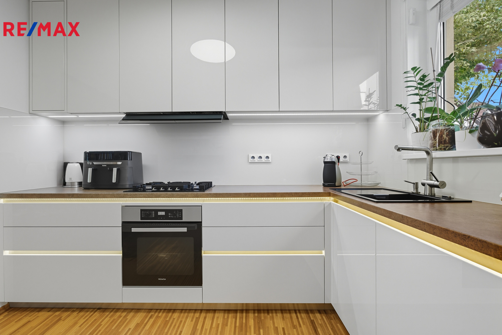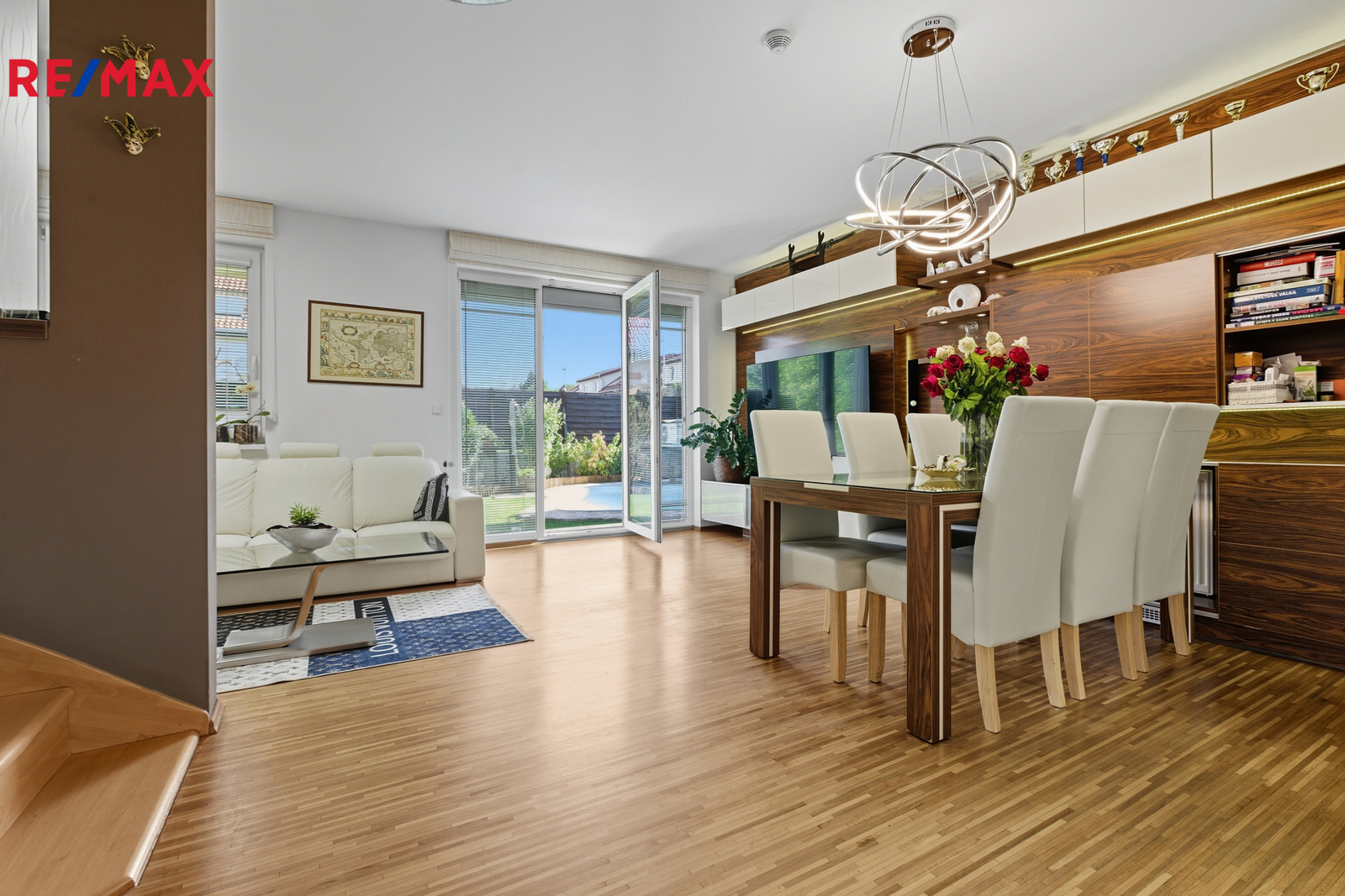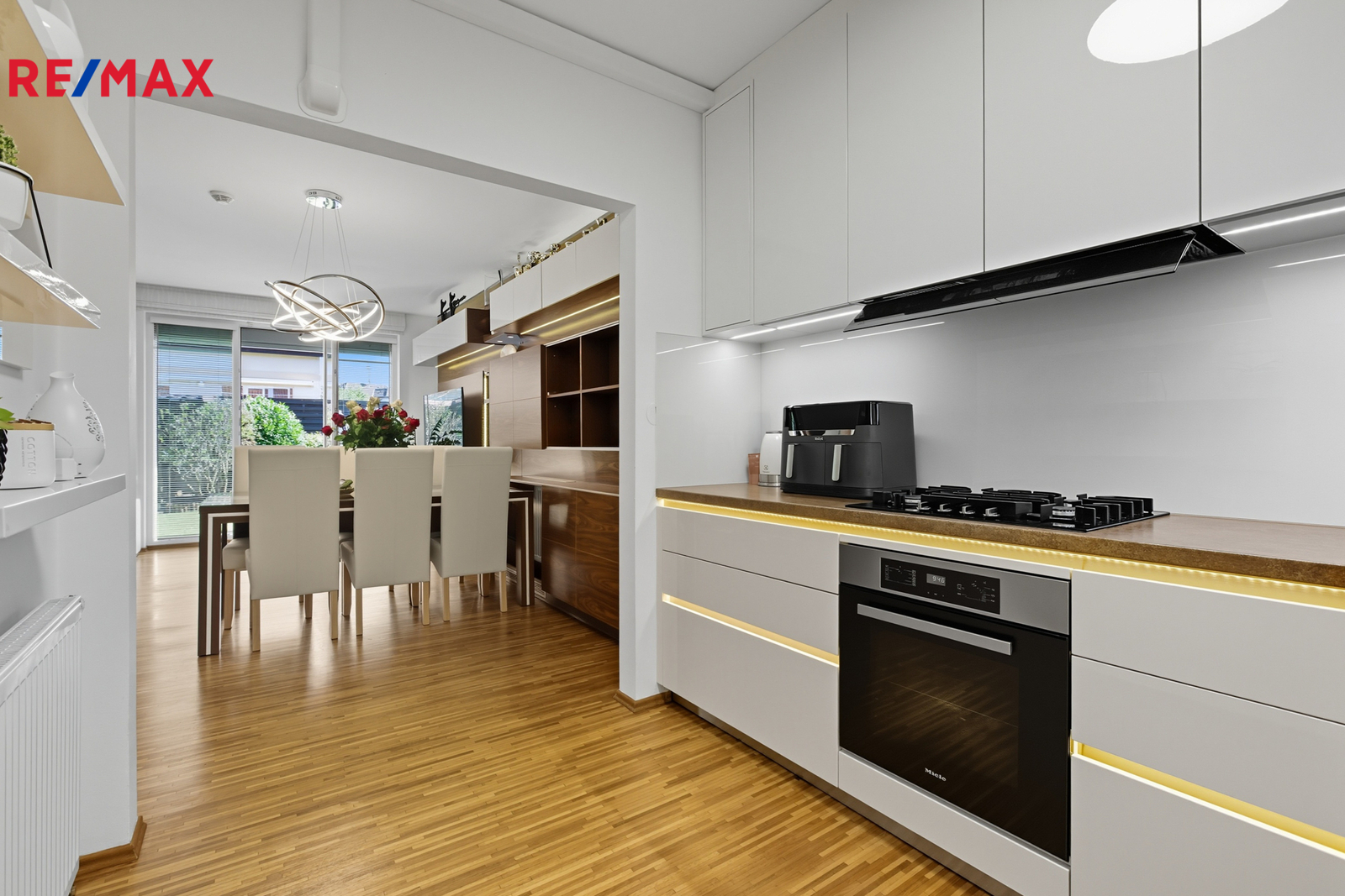 Nabízím exkluzivní rohový řadový dům 4+kk s užitnou plochou přibližně 143 m² a garáží o velikosti 21,7 m², který prošel kompletní rekonstrukcí v roce 2024. Dům se nachází v klidné části Prahy 9 – Satalice a prodává se plně zařízený, včetně nábytku na míru, vestavěných spotřebičů Miele a designových doplňků.