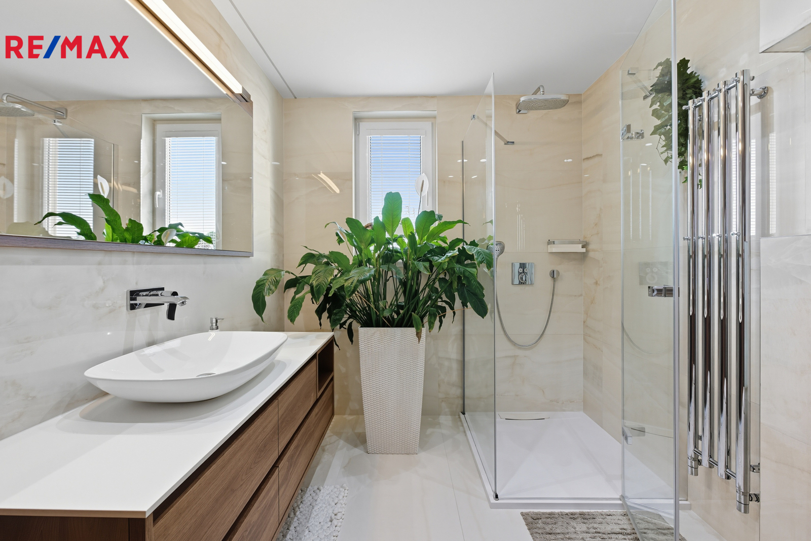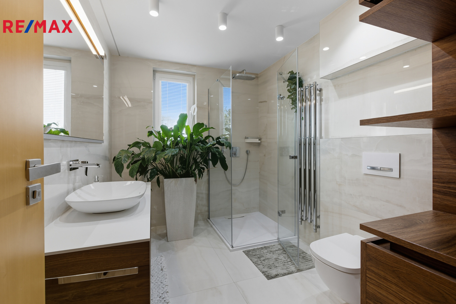 Každý detail interiéru byl promyšlen s důrazem na funkčnost, kvalitu a styl. Dům je navržen designérem a nabízí komfortní a elegantní prostředí bez nutnosti dalších investic.