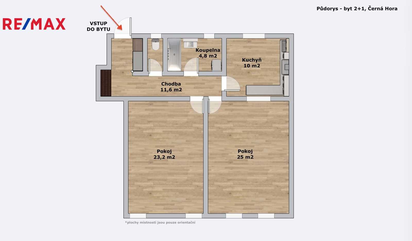 Ve výhradním zastoupení nabízíme k prodeji prostorný byt o dispozici 2+1 a celkové výměře 76 m², který se nachází ve 2. patře bytového domu přímo v centru Černé Hory, jen pár kroků od autobusové zastávky.