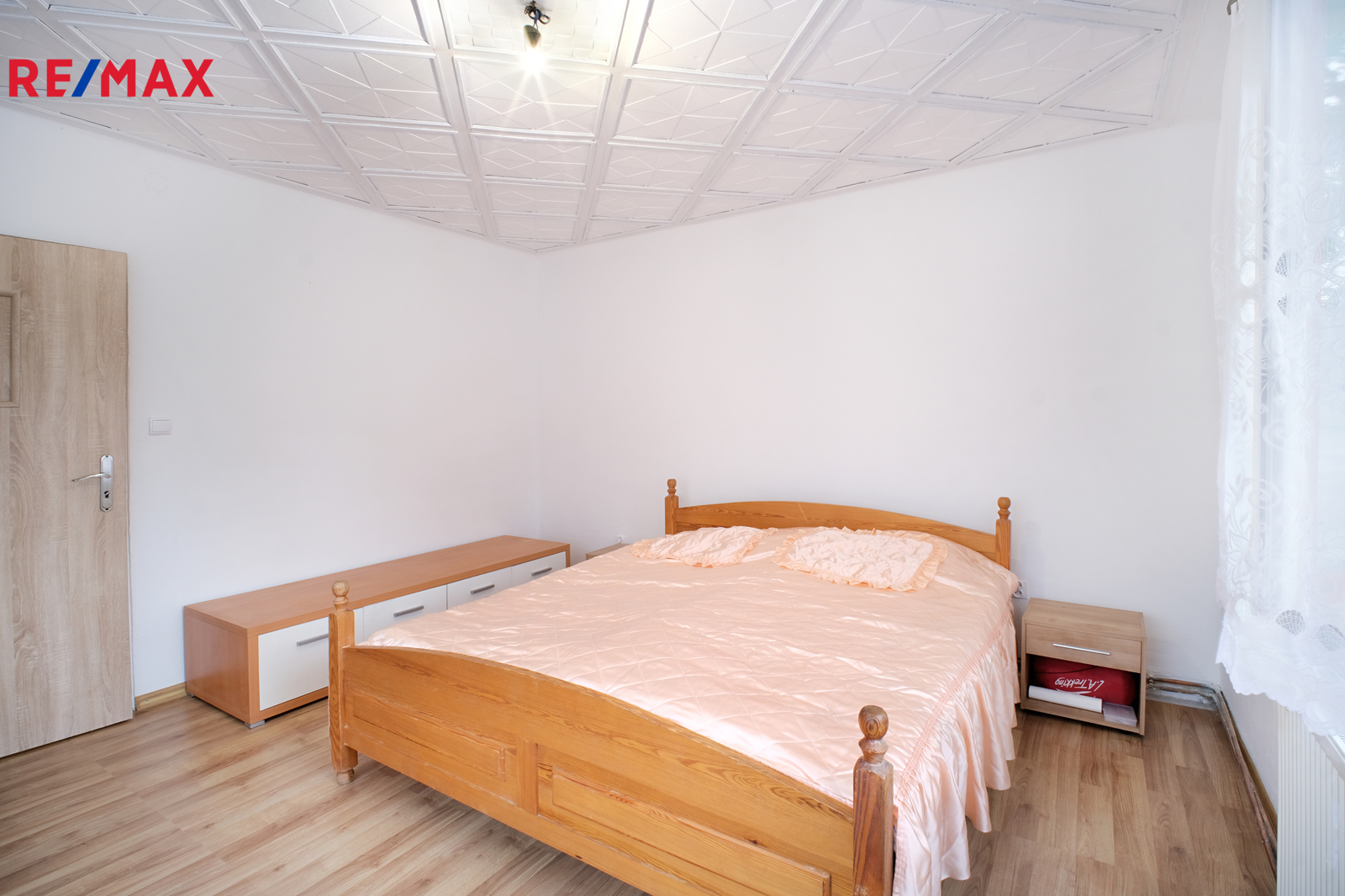 - v přízemí se nachází vstupní chodba, toaleta, ložnice s koupelnou, druhá ložnice, obývací prostor, velká jídelna a kuchyň včetně kuchyňské linky a sporáku.