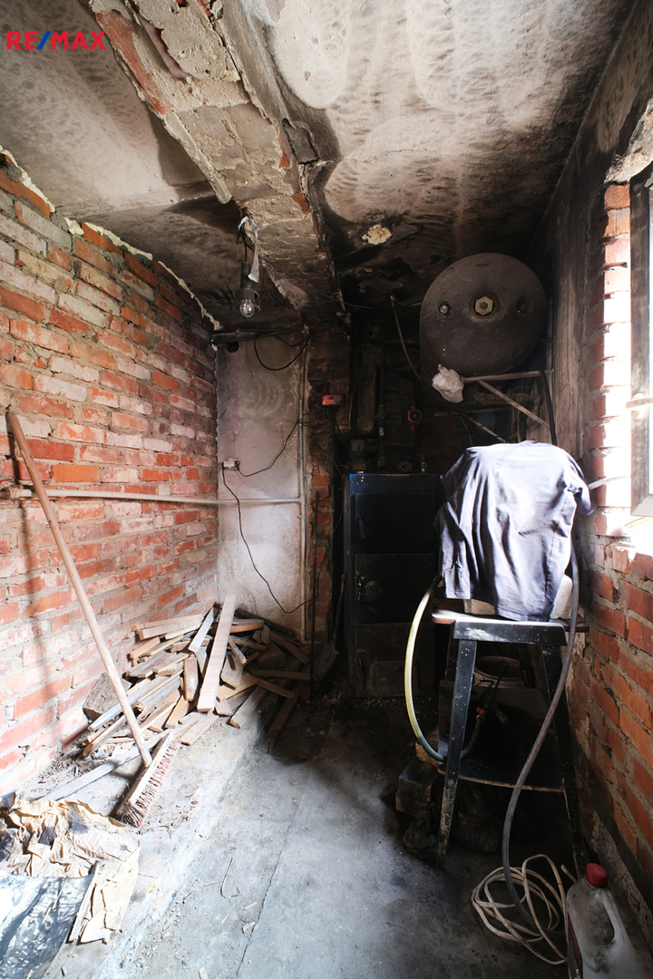 - dům je průchozí do hospodářské budovy, která je rozdělena do 3 částí z nichž v jedné je kotel na tuhá paliva s automatickým nastavením potřebné teploty v domě, vodu ohřívá bojler