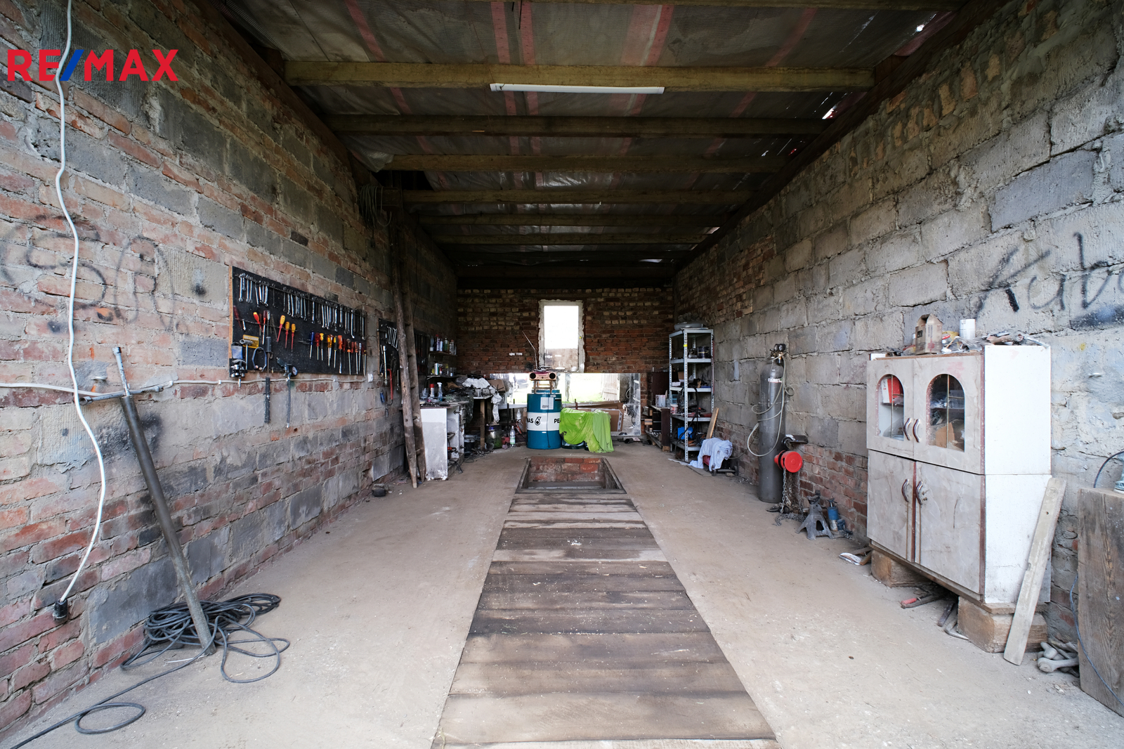Těsně vedle domu se nachází provozní budova se dvěma části o velikosti 90 m2 s výškou 3,3m. Jedna část nyní slouží jako lakovna a druhá část jako servisní prostor pro auta včetně montážní jámy.