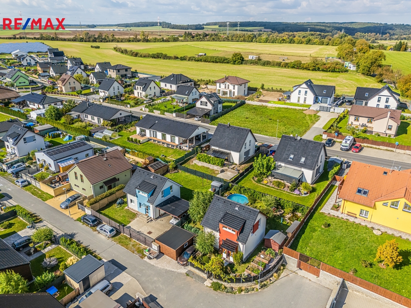 Jedná se o již zabydlenou dvoupodlažní novostavbu z r. 2019, na konci slepé ulice klidné zástavby rodinných domů.