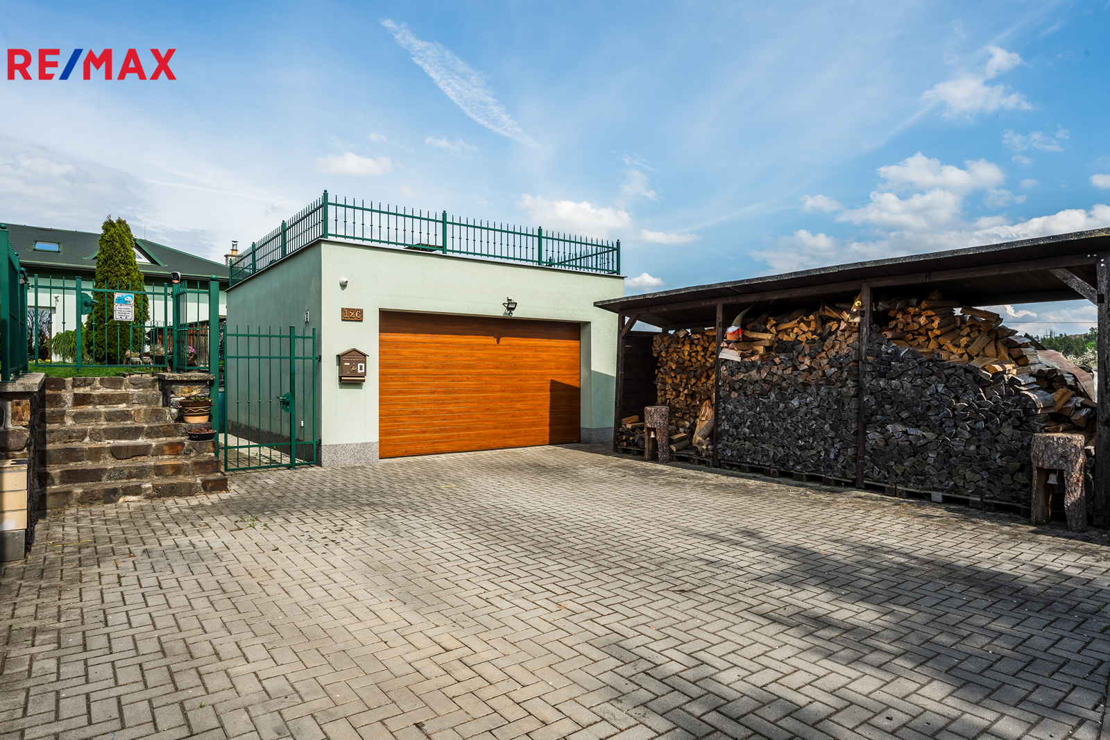 Komfort parkování zajišťuje prostorná garáž (30,5 m²) a před ní je dostatek místa pro další až tři vozidla.