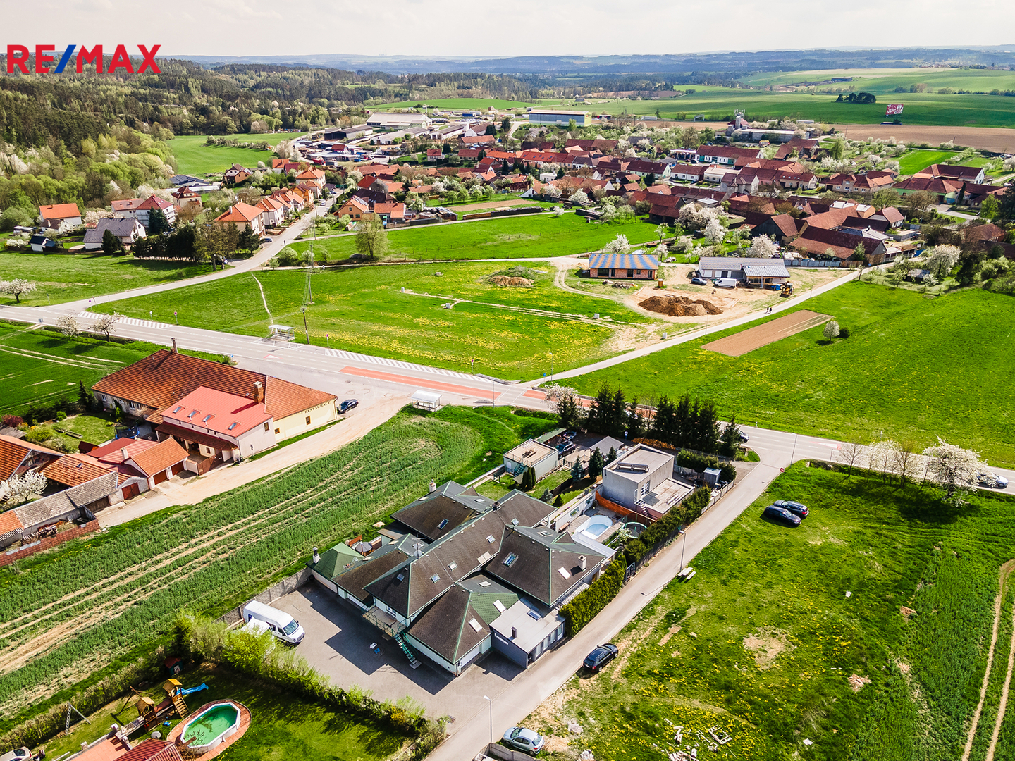 Velké Meziříčí s kompletní občanskou vybaveností je vzdáleno jen 4 minuty jízdy autem, stejně tak i obchodní zóna s Lidlem a dalšími obchody.