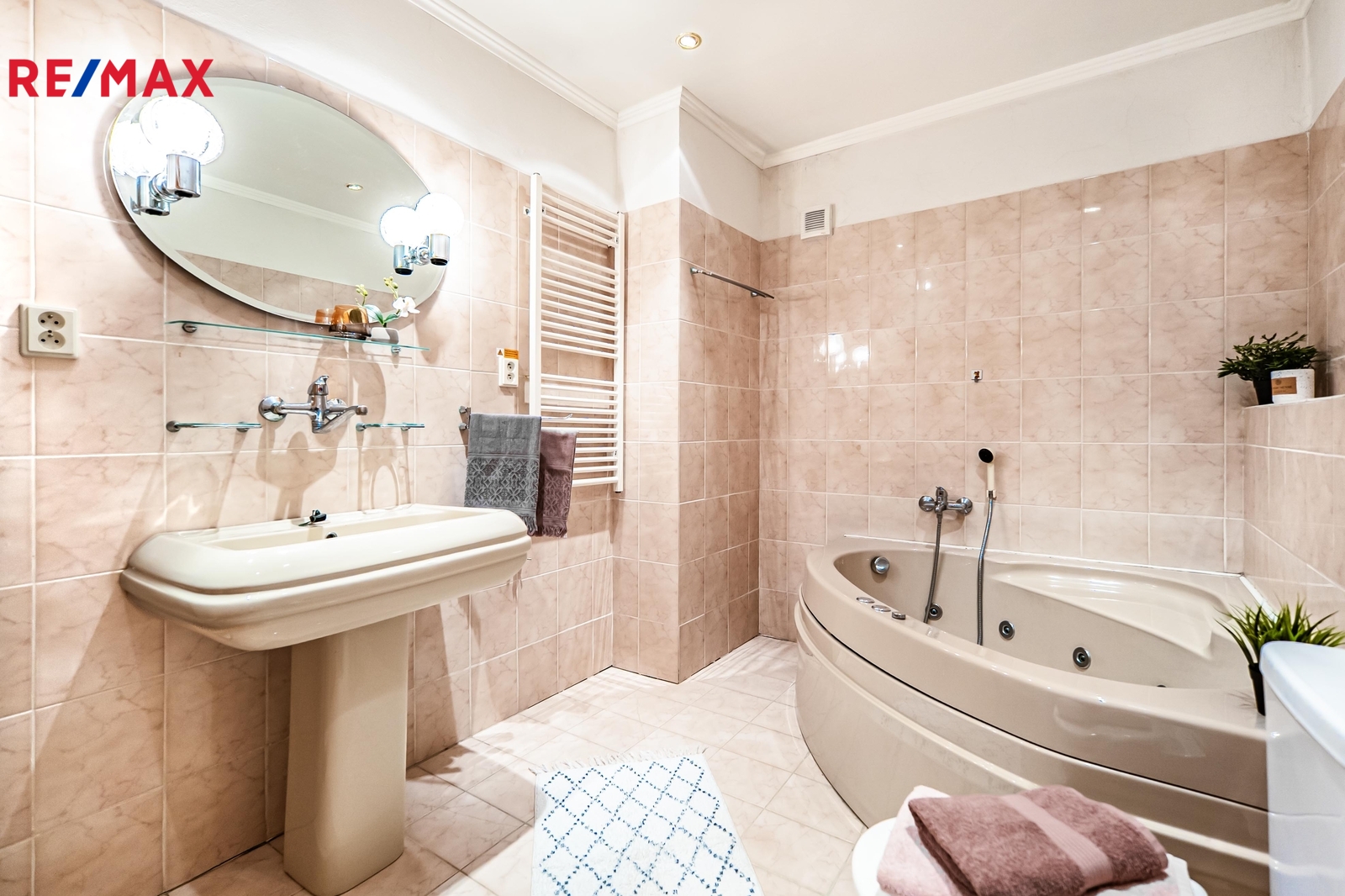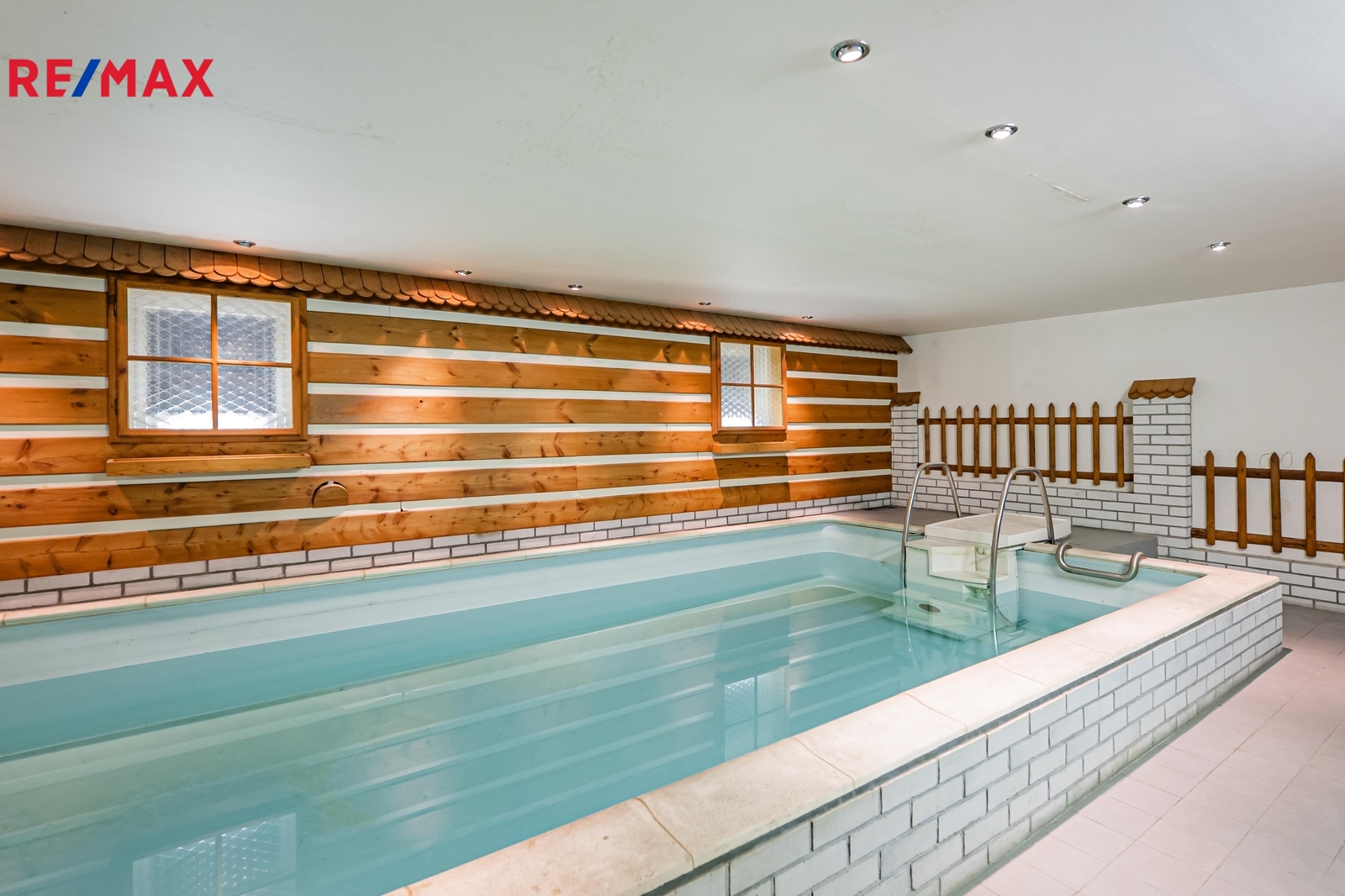 V podzemním podlaží najdete místnost s vnitřním bazénem Desjoyaux, kde se můžete koupat po celý rok. Dále se dům skládá ze dvou nadzemních podlaží a obytného podkroví. Interiér je vybaven kuchyňskou linkou se spotřebiči a dohromady tady máte 4 koupelny a toalety. Samozřejmě nechybí plastová okna. Přes celou šířku domu je balkon s výhledem do ulice a na opačné straně menší balkon s pohledem do zahrady.