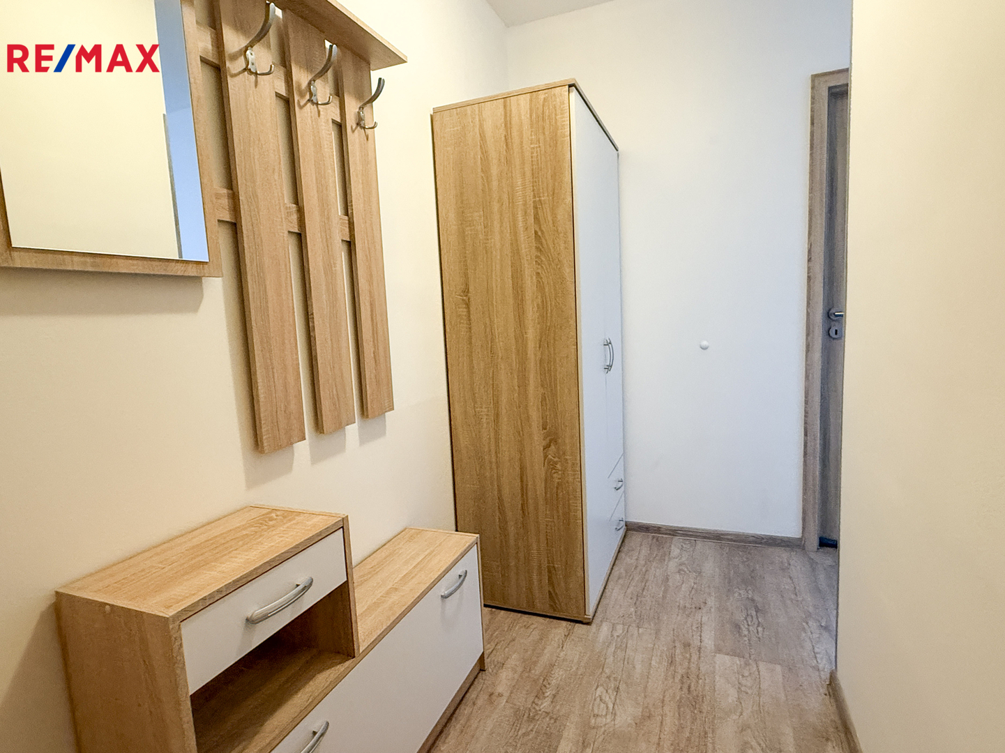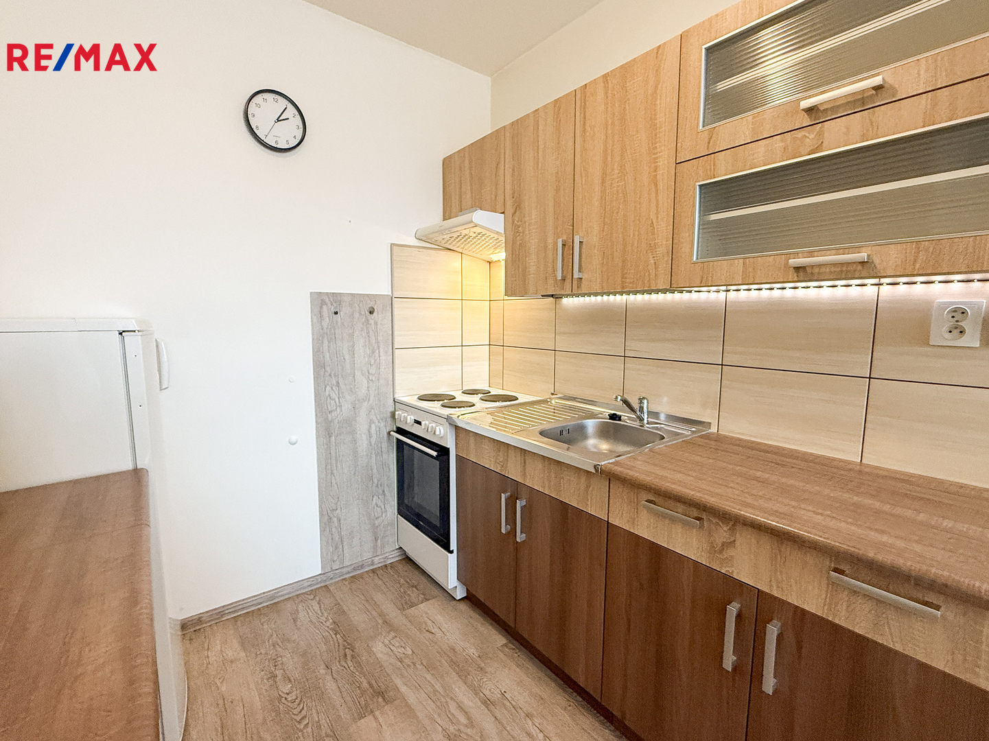 Byt je světlý, po částečné rekonstrukci a připravený k nastěhování. Dispozici tvoří obývací pokoj s kuchyňským koutem, samostatná ložnice, koupelna se sprchovým koutem a WC a předsíň s úložným prostorem.