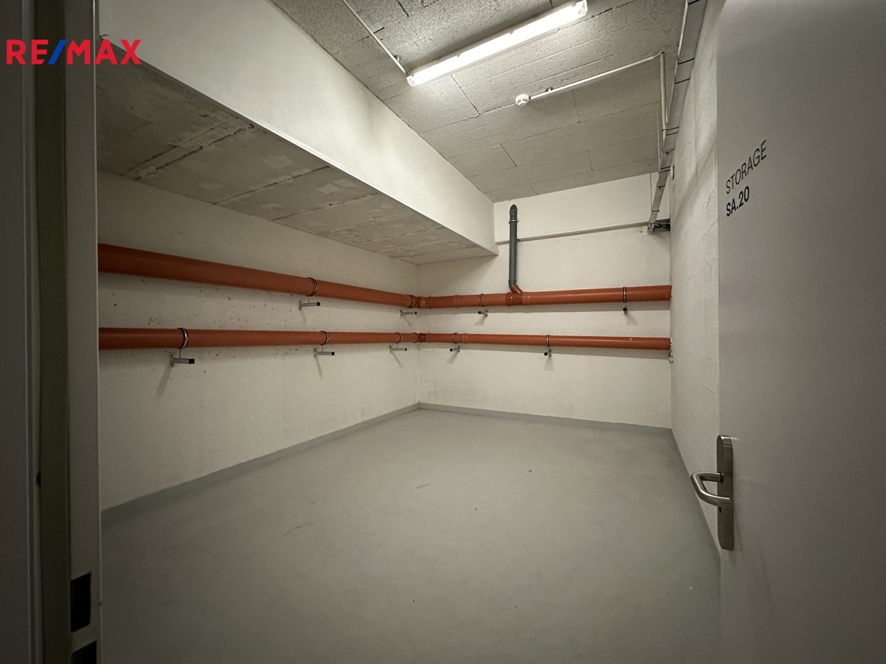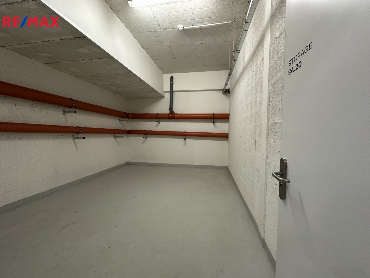 Dovolujeme si vám nabídnout pronájem podzemní garáže a skladu s vraty na elektrický pohon (23m2) a skutečně prostorný sklep/sklad (23m2). Obývací pokoj (33m2) disponuje plně vybavenou kuchyní se spotřebiči - myčka nádobí, varná deska, digestoř, elektrická pečící trouba, lednice s mrazničkou, vše doplněno dostatkem úložného a pracovního prostoru a kuchyňským ostrůvkem. Ložnice o velikosti 16m2 je vybavena prostornou skříní na míru, další úložný prostor najdeme v předsíni. V obytných místnostech je dřevěná podlaha, v ostatních místnostech dlažba. Prostorná a elegantní koupelna (4m2) nabízí sprchový kout, umyvadlo, toaletu a topný žebříček. Hned vedle kuchyně najdeme praktickou komoru pro umístění pračky a sušičky. Nejvyšší možný standard bytu doplňuje intelignetní domácí systém s centrálním panelem, kterým lze ovládat veškeré osvětlení, připojení elektrospotřebičů, topení a mnoho dalšího, včetně video intercomu. Samozřejmostí jsou leektrické venkovní žaluzie pro zastínění.