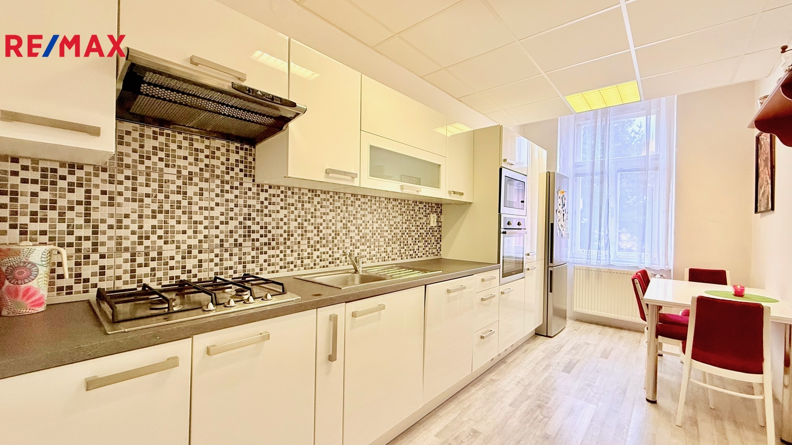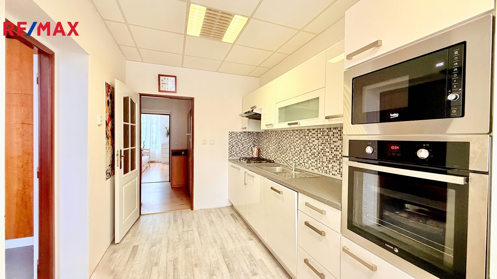 Pro vytápění bytu je k dispozici kombinovaný plynový kotel, který zároveň zajišťuje teplou vodu.