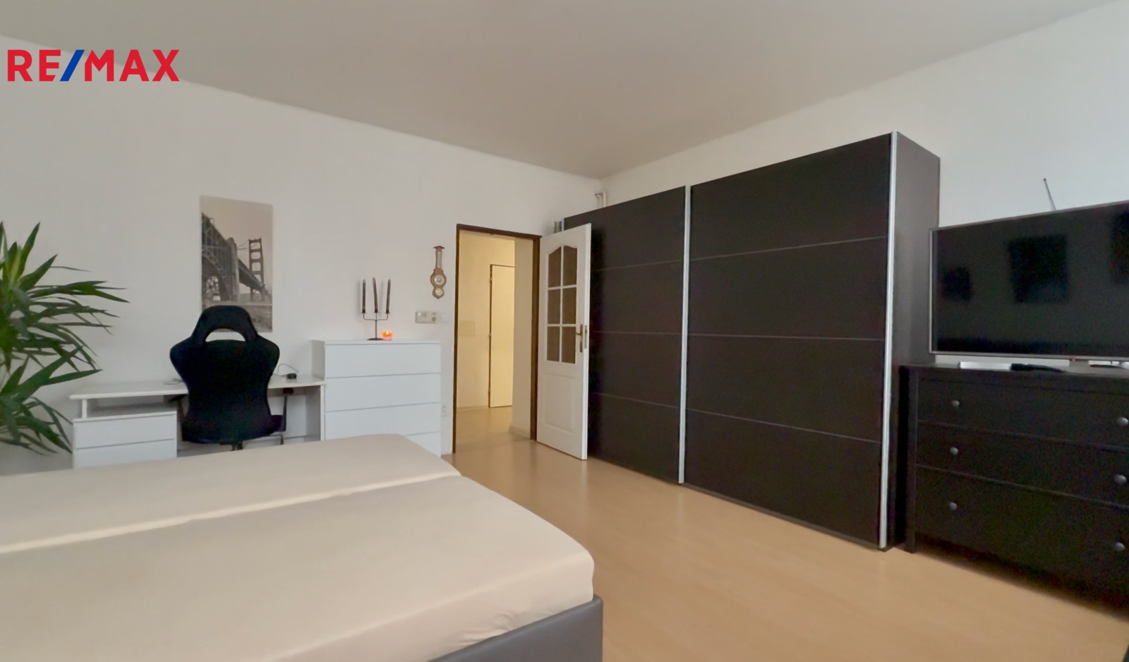 Celková plocha bytu činí 95 m², což poskytuje dostatek prostoru pro pohodlné bydlení.