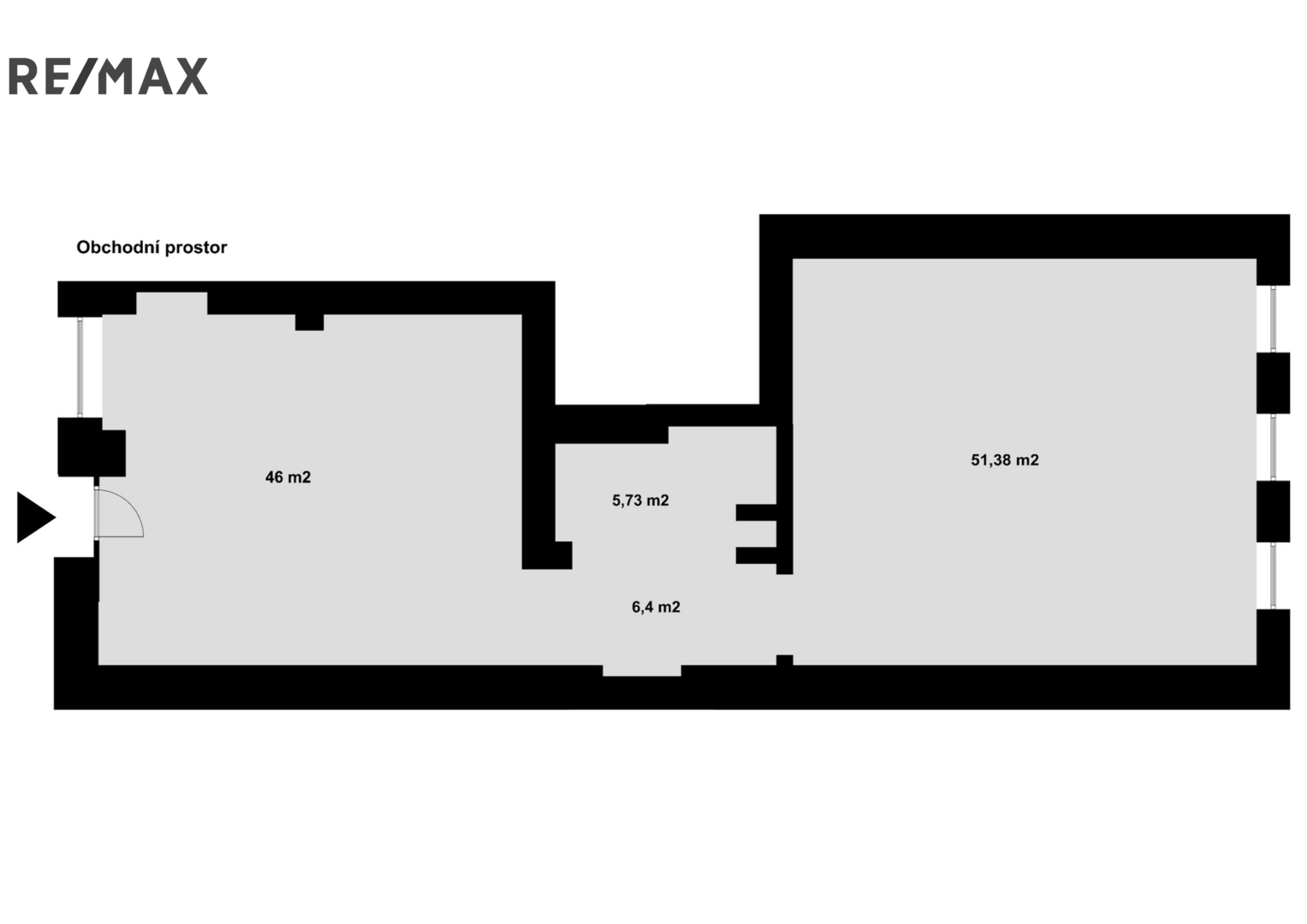 Dispozice zahrnuje hlavní prodejní plochu, denní místnost využitelnou jako kancelář či kuchyňku, samostatné WC a sklad. Vstup je přímo z podloubí, prostor je světlý a reprezentativní. Vhodný je pro prodejnu, showroom, kancelář, kosmetické nebo masážní studio, barber shop, galerii či ateliér.