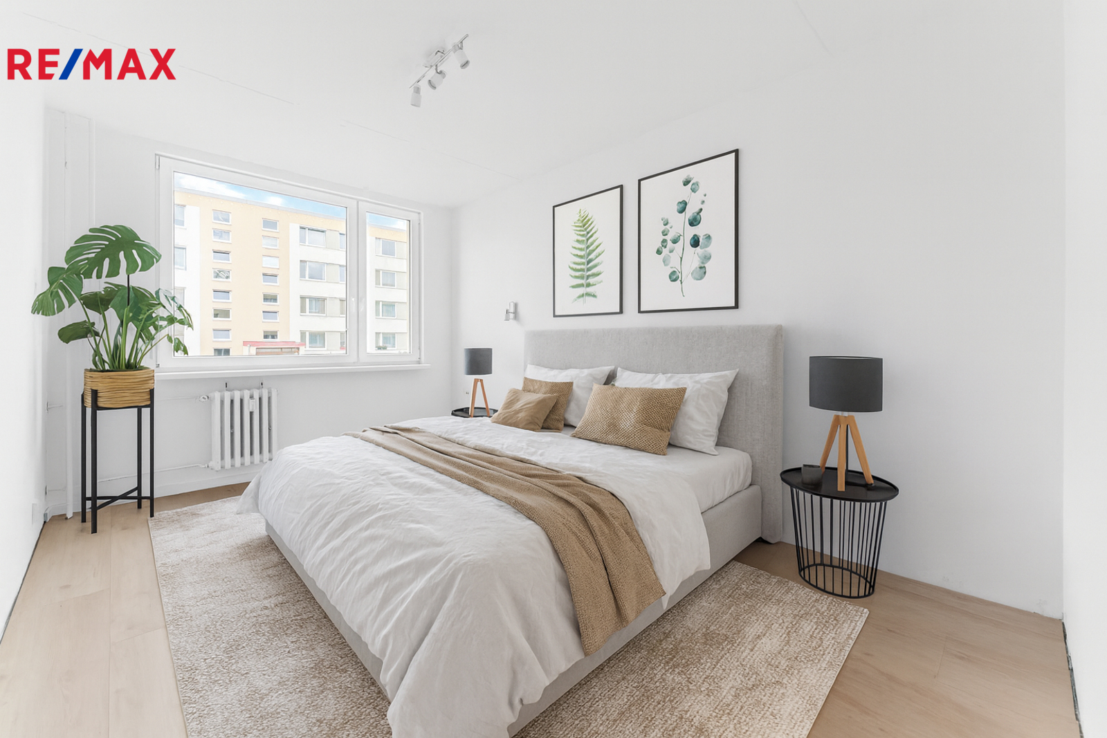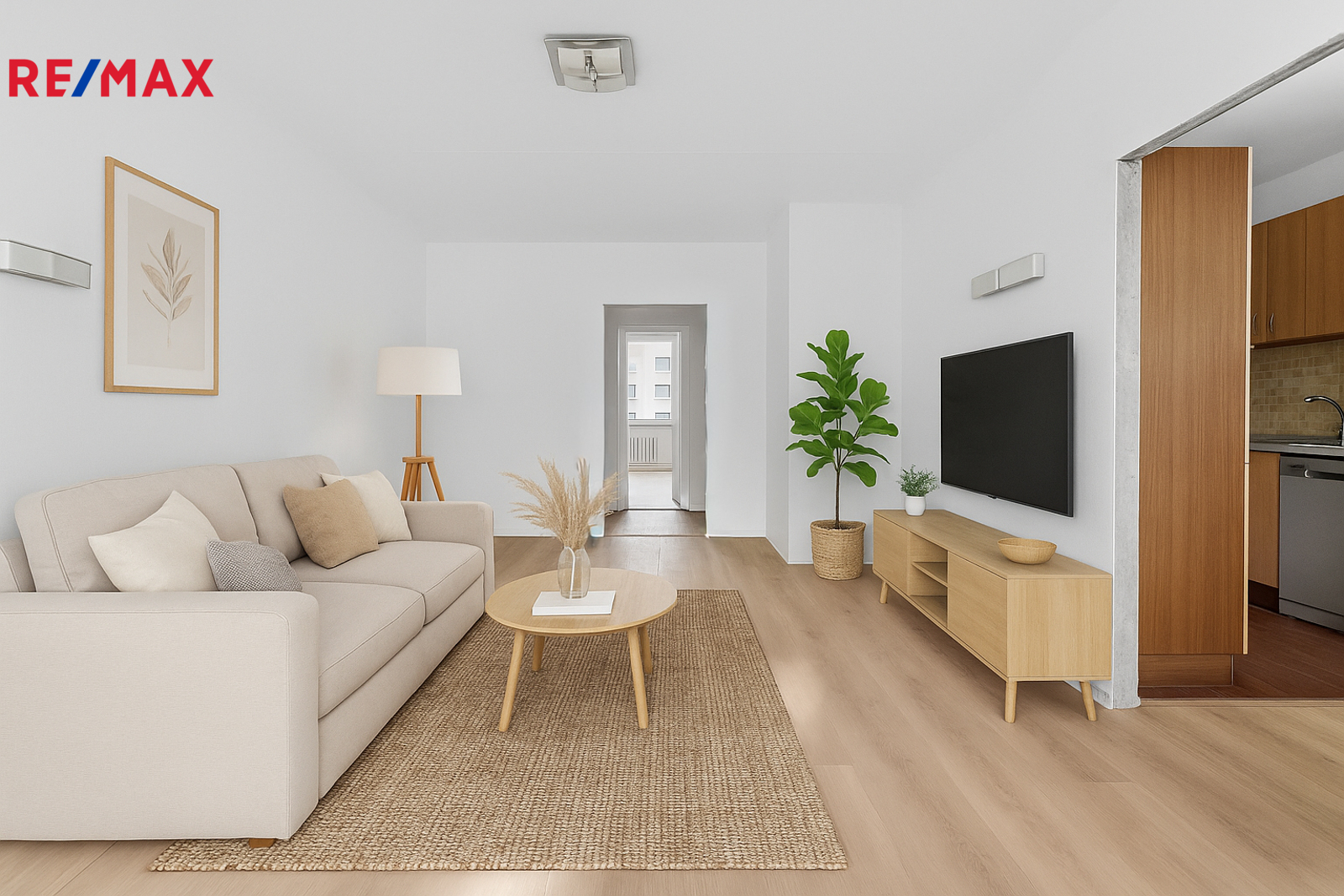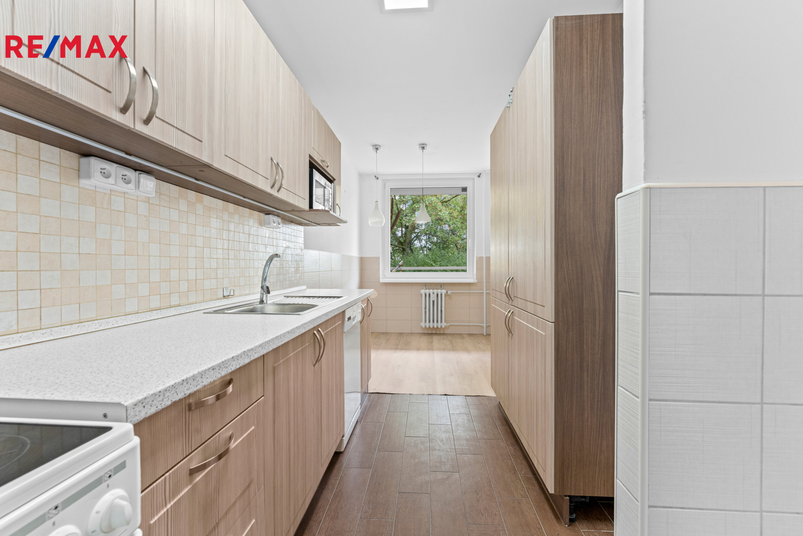 Dispozice bytu je prakticky řešená – z vstupní chodby je přístup do všech místností: dvou neprůchozích pokojů, obývacího pokoje, kuchyně, koupelny, samostatné toalety a komory. Z obývacího pokoje je vstup na lodžii orientovanou směrem do zeleně. Ostatní místnosti jsou orientovány do ulice, kde je možnost parkování v rámci modré zóny.