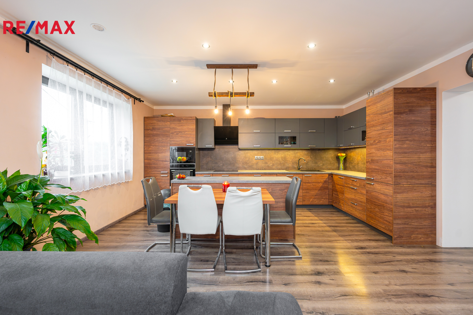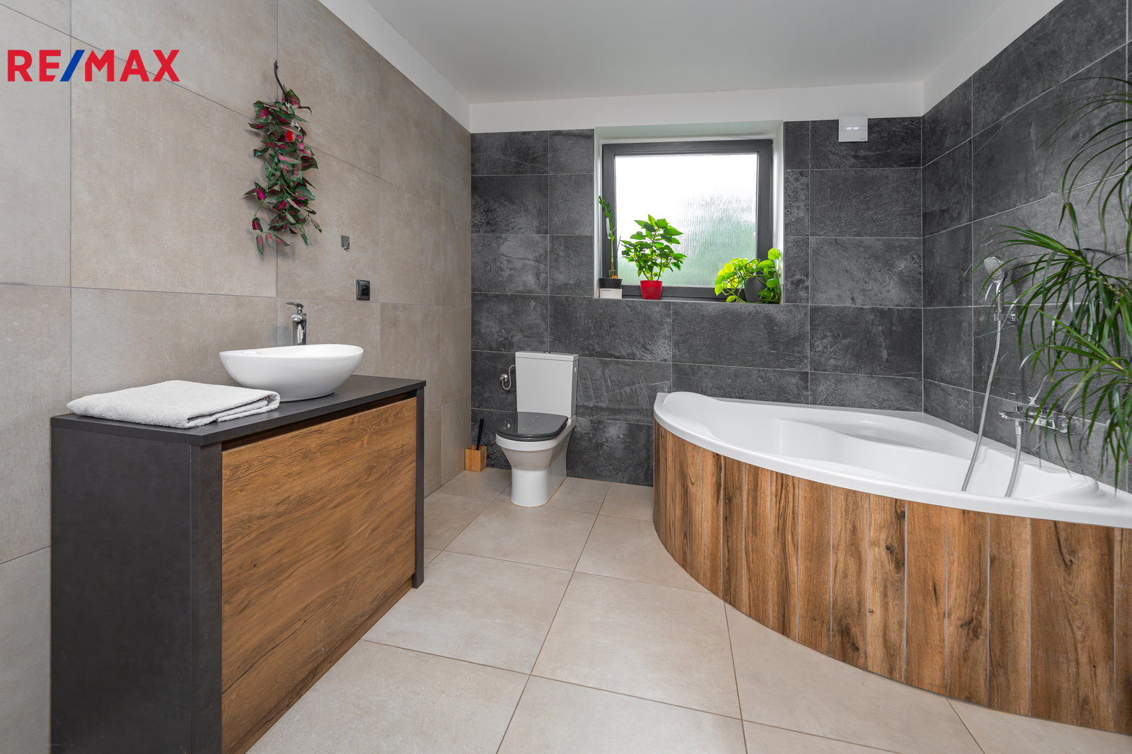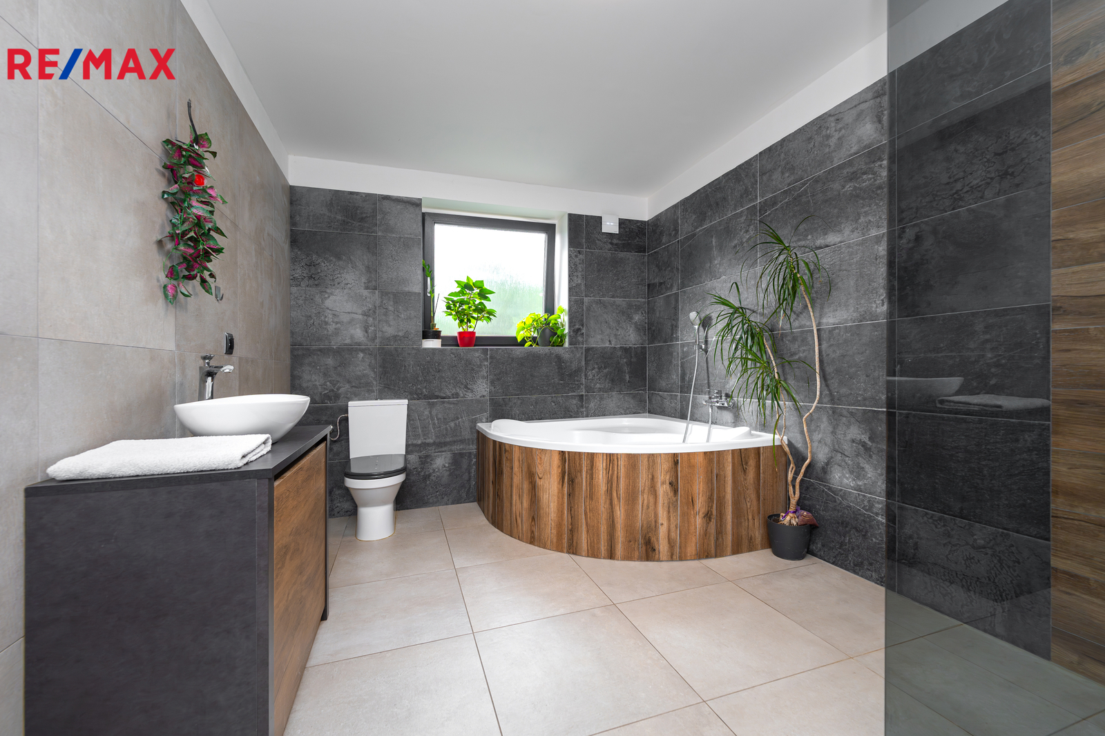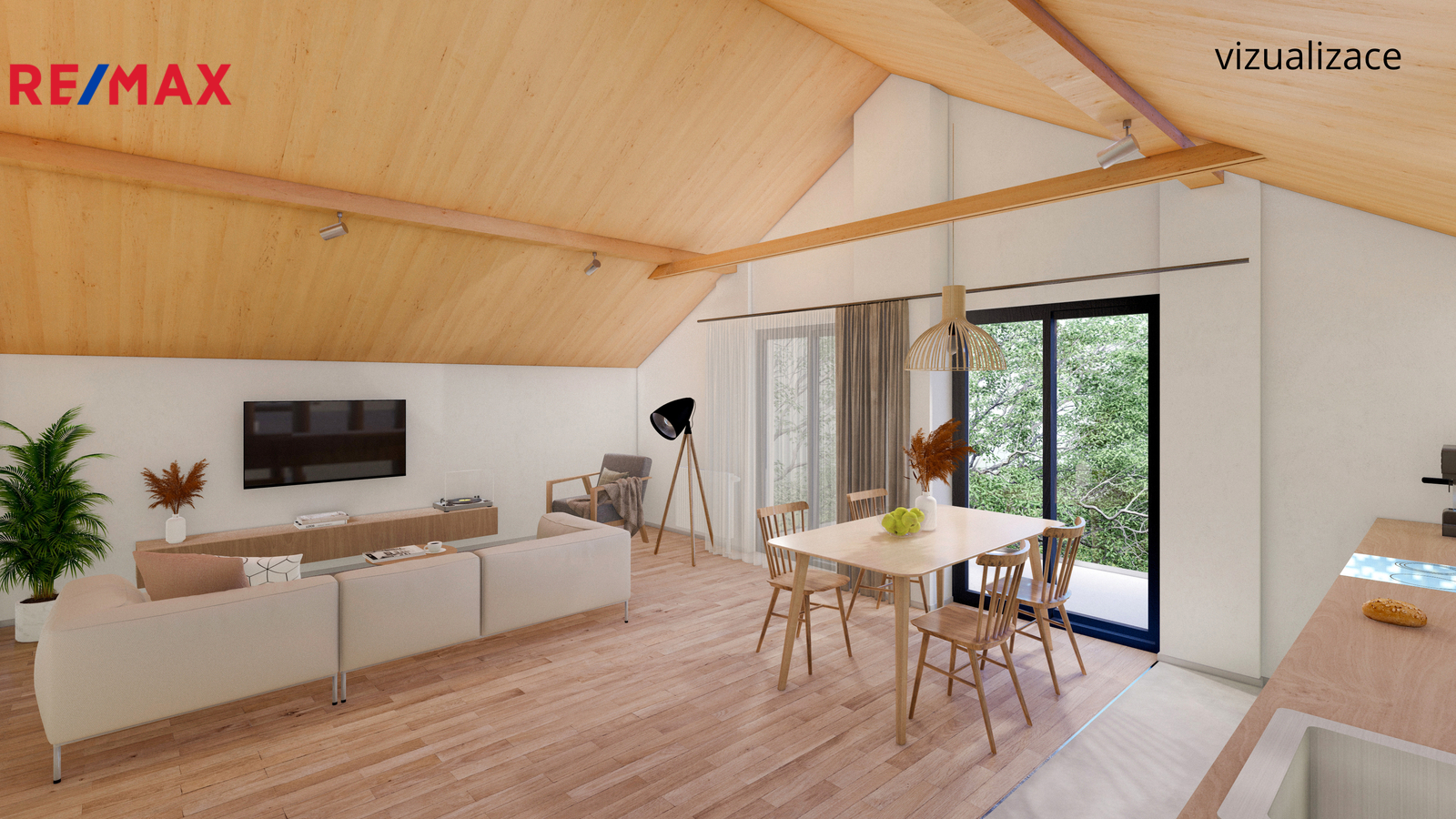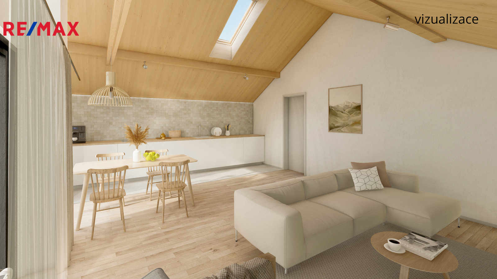 Spodní patro je již téměř kompletně zrekonstruované – najdete zde nová okna s trojsklem, novou koupelnu, podlahy s podlahovým vytápěním i kuchyňskou linku. Dispozice aktuálně 2+kk doplněná o dvě šatny, technickou místnost a chodbu s možností jednoduché úpravy na 3+kk.