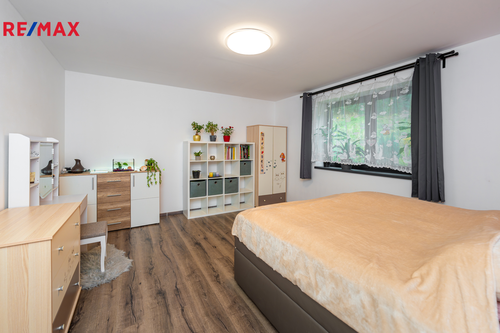 Horní patro je v původním stavu- připraveno k celkové rekonstrukci – nabízí však možnost vybudování druhé bytové jednotky pro vícegenerační bydlení nebo investiční pronájem, anebo zde mohou být opravdu velmi velkorysé pokoje a ložnice. Dispozičně rovněž jako 3+kk, s možností změny dispozice.
