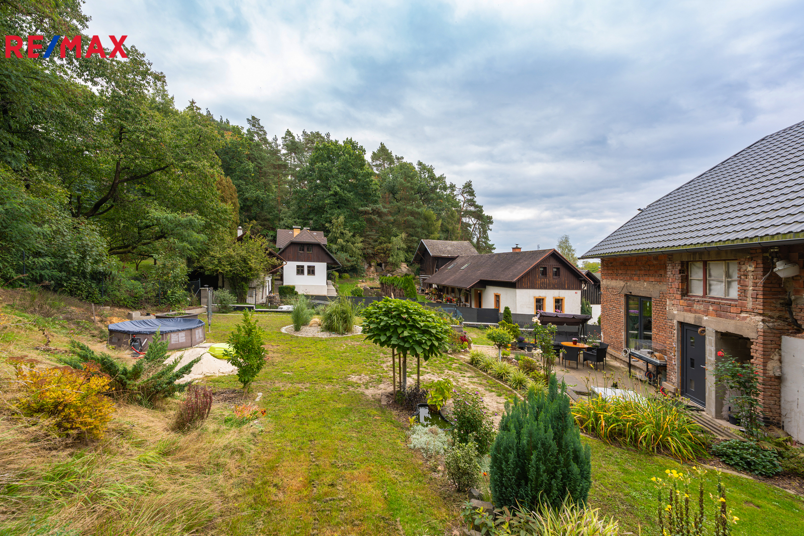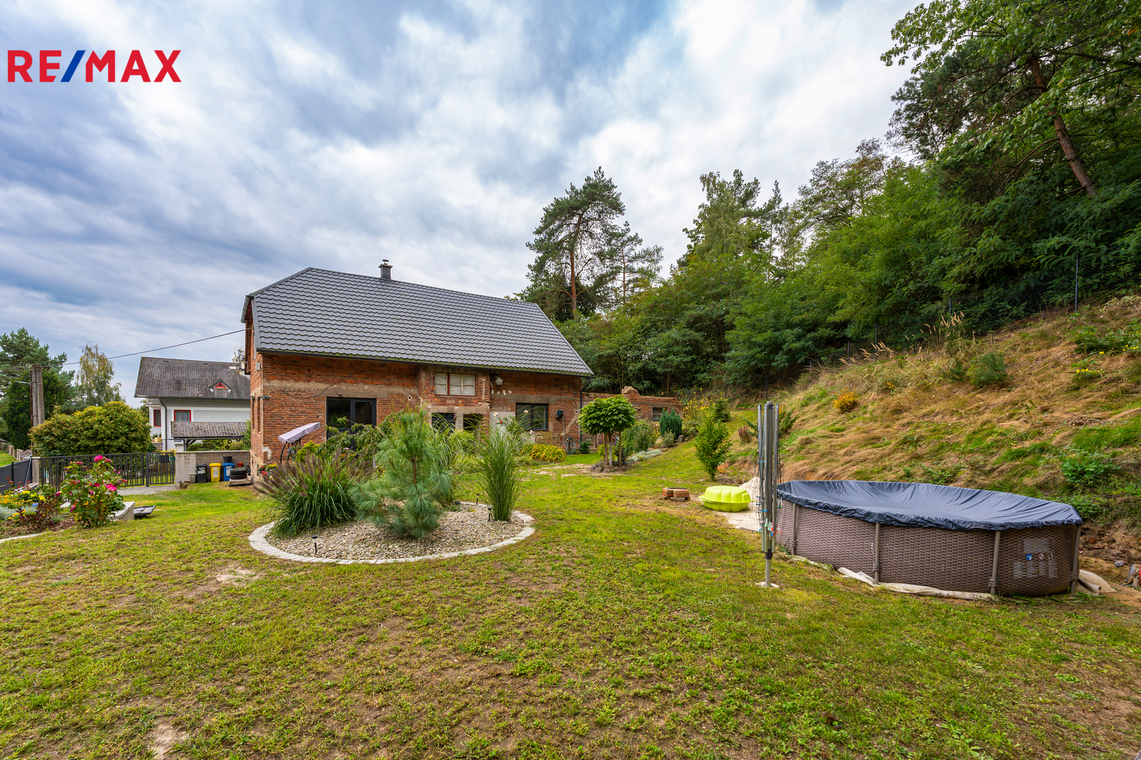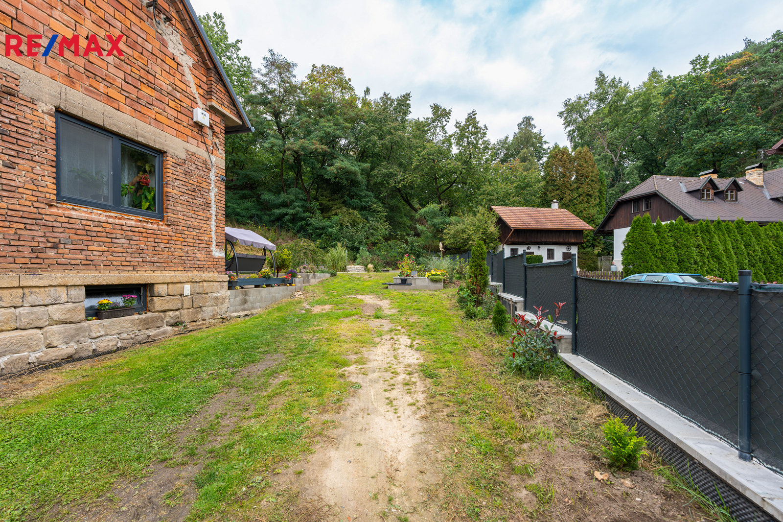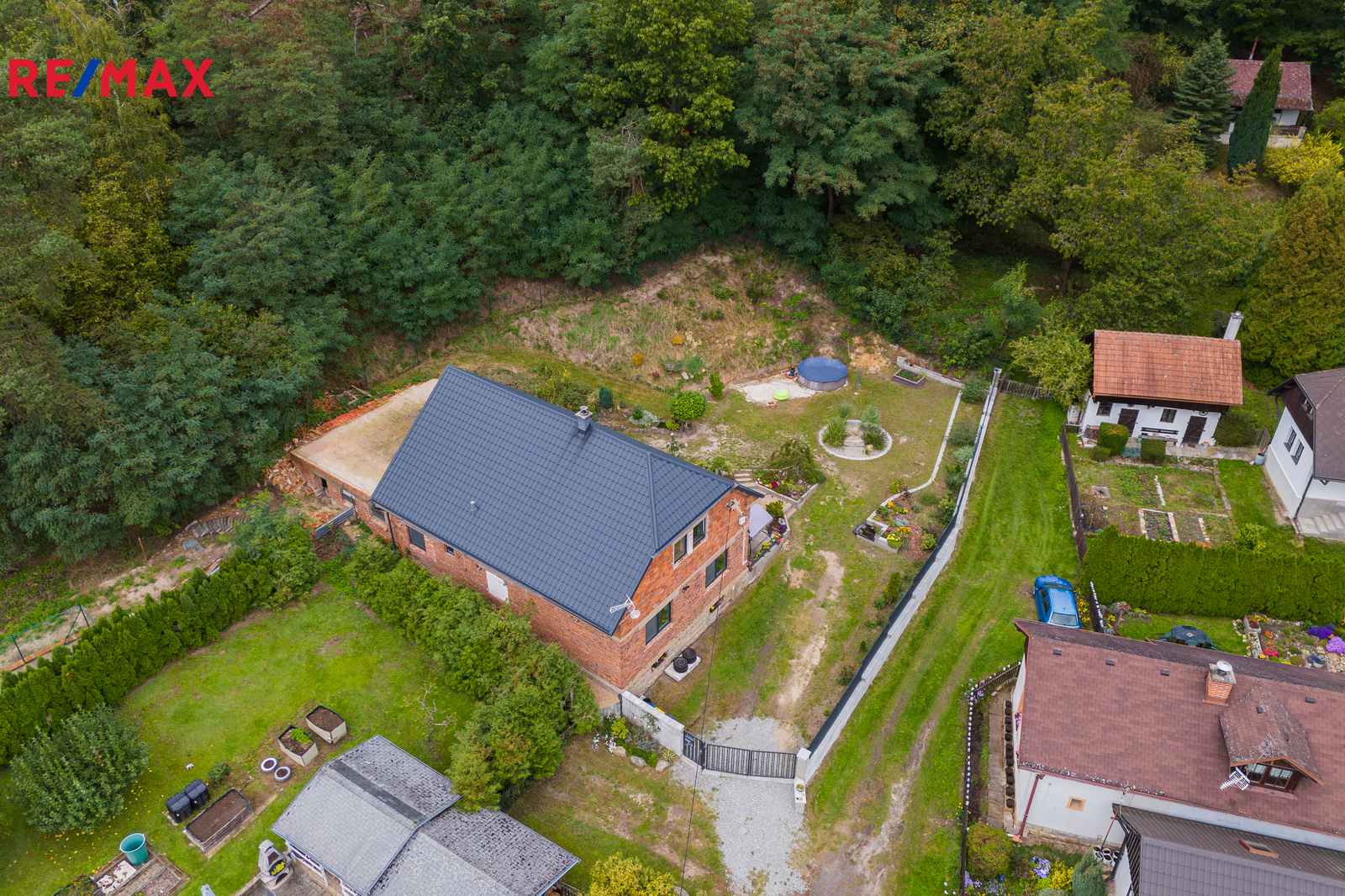 Dům je částečně podsklepen a ještě je nutno zmínit přístavbu, ta je také v původním stavu a bylo k ní vydáno povolení k demolici - zahradu je tedy možno ještě zvětšit, anebo na jejím místě vybudovat pergolu a z patra vyjít přímo na terasu s výhledem do lesa (naznačeno ve vizualizaci).