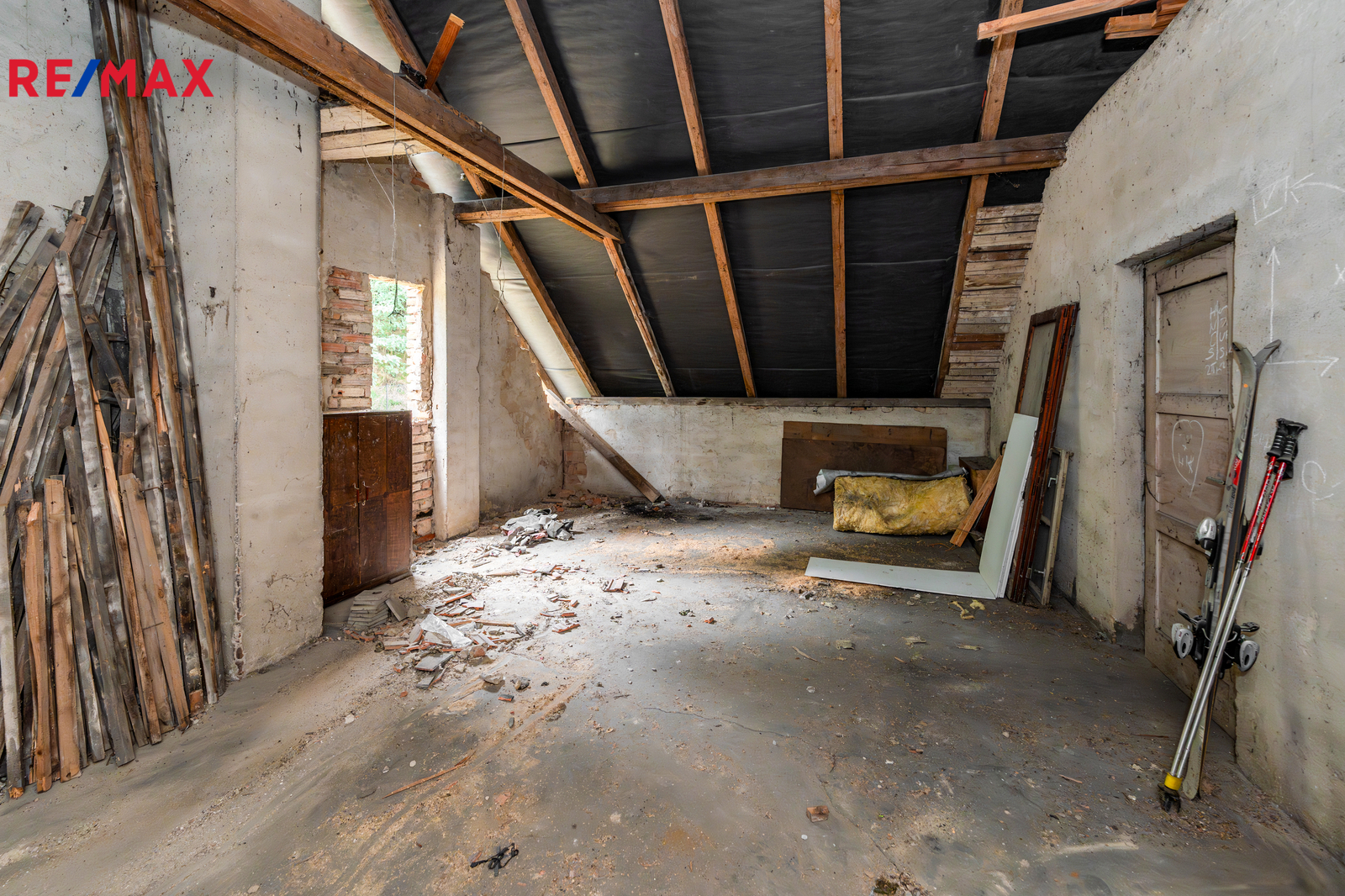 V horním patře je po rekonstrukci střecha a díky dokončenému spodnímu patru je možné se okamžitě nastěhovat a dům upravovat postupně.