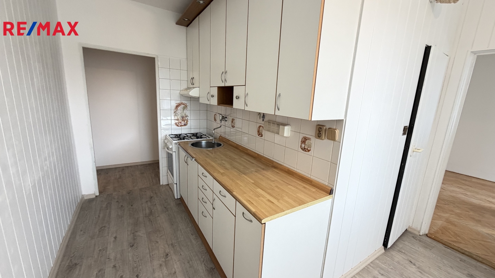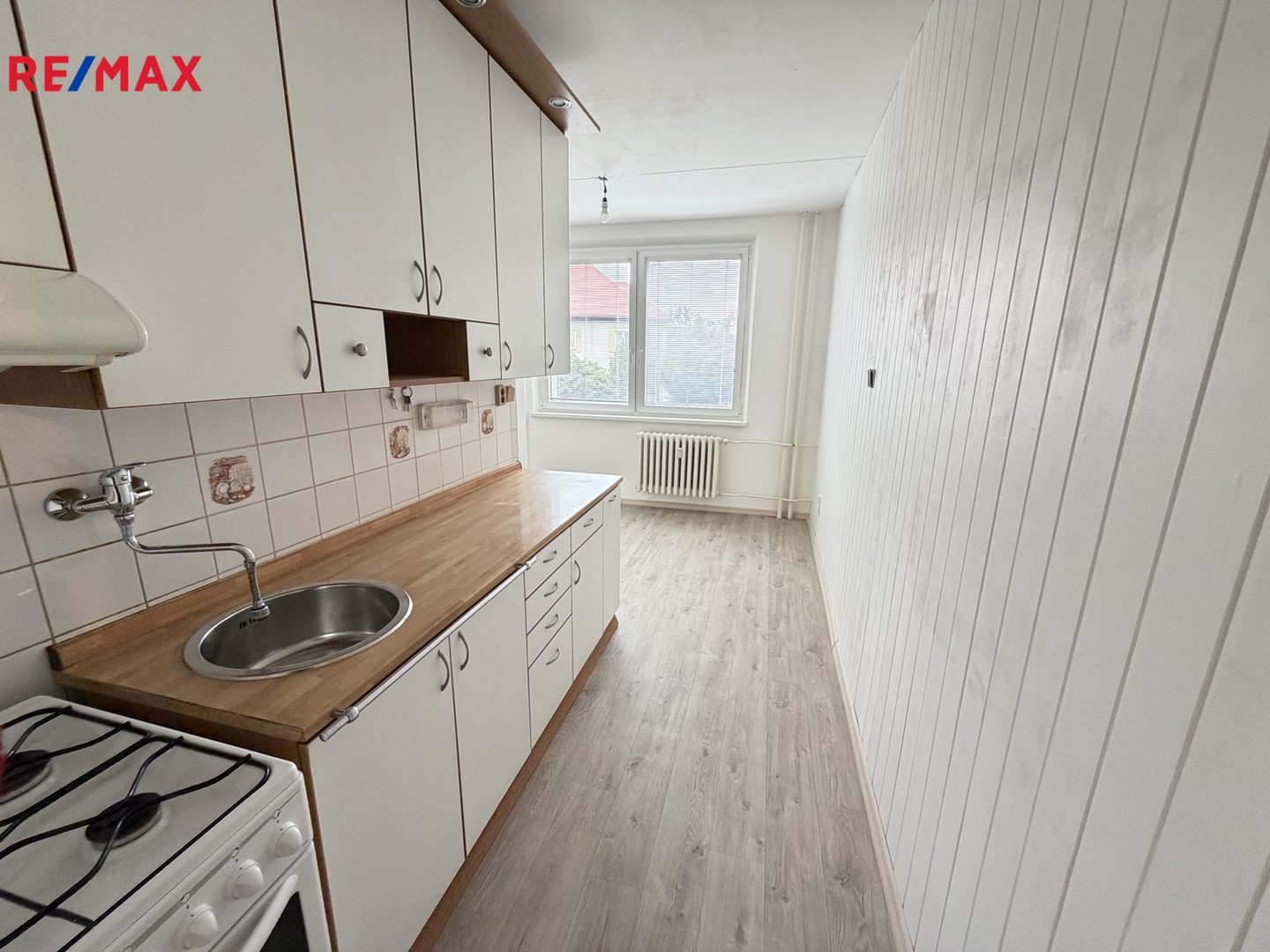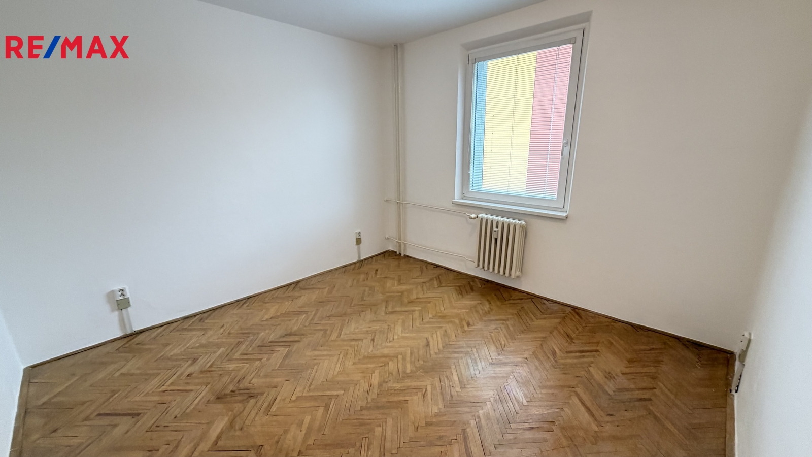 Byt má praktickou dispozici – tři samostatné pokoje, kuchyň, komoru a velkou lodžií s příjemným výhledem.
