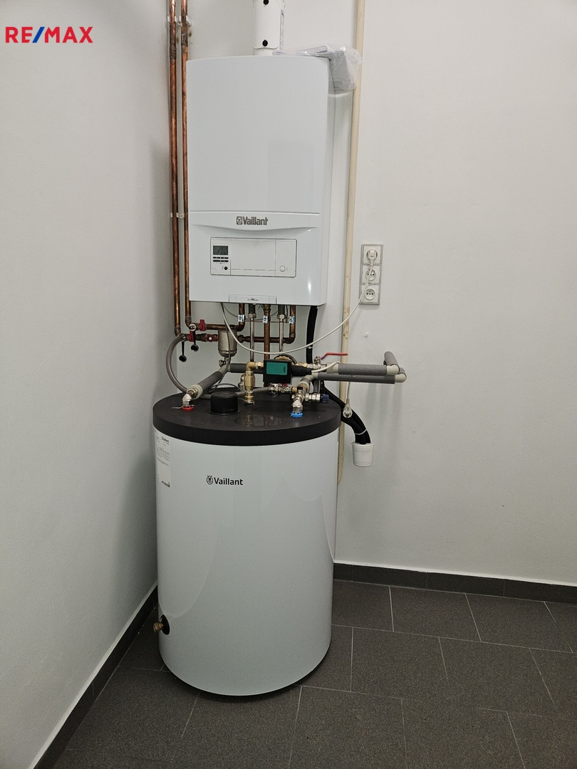 Nové podlahy, dveře, okna, vybavená kuchyň, koupelna, WC, ústřední vytápění plynovým kondenzačním kotlem a snížené zateplené stropy. Samostatné měření energií.