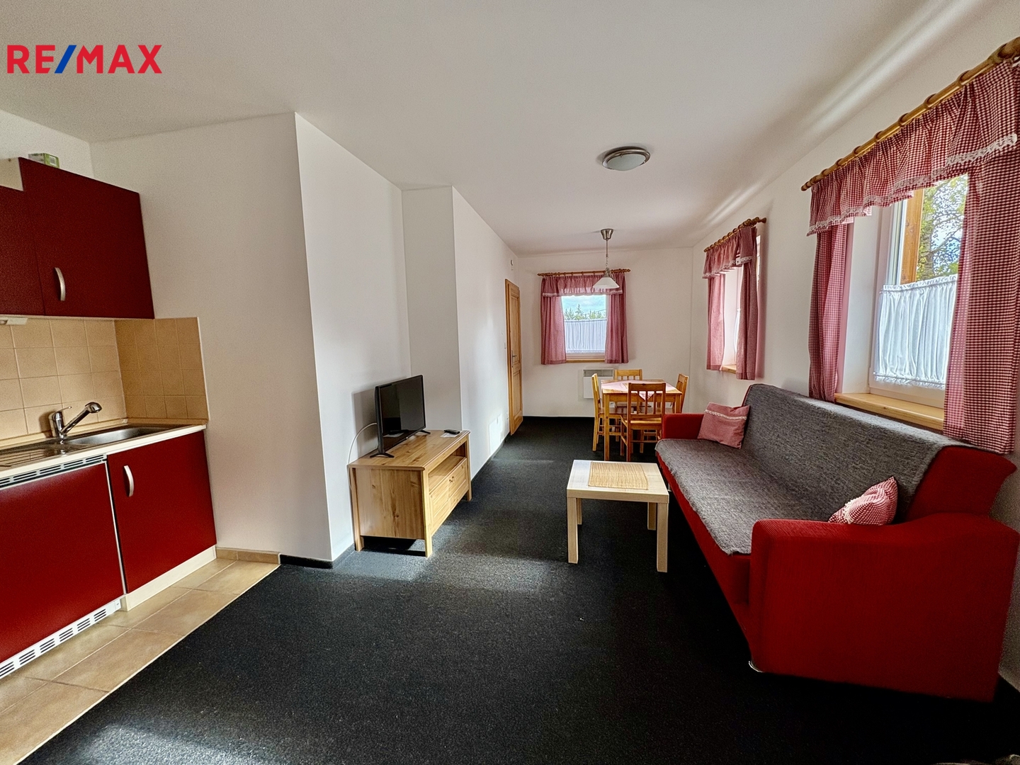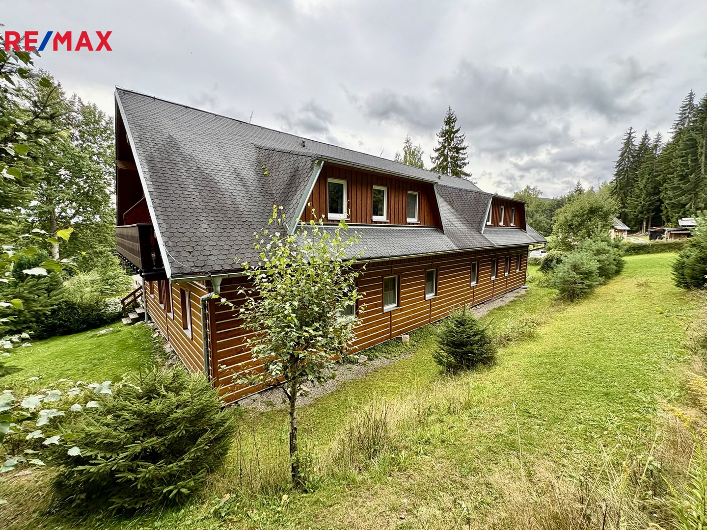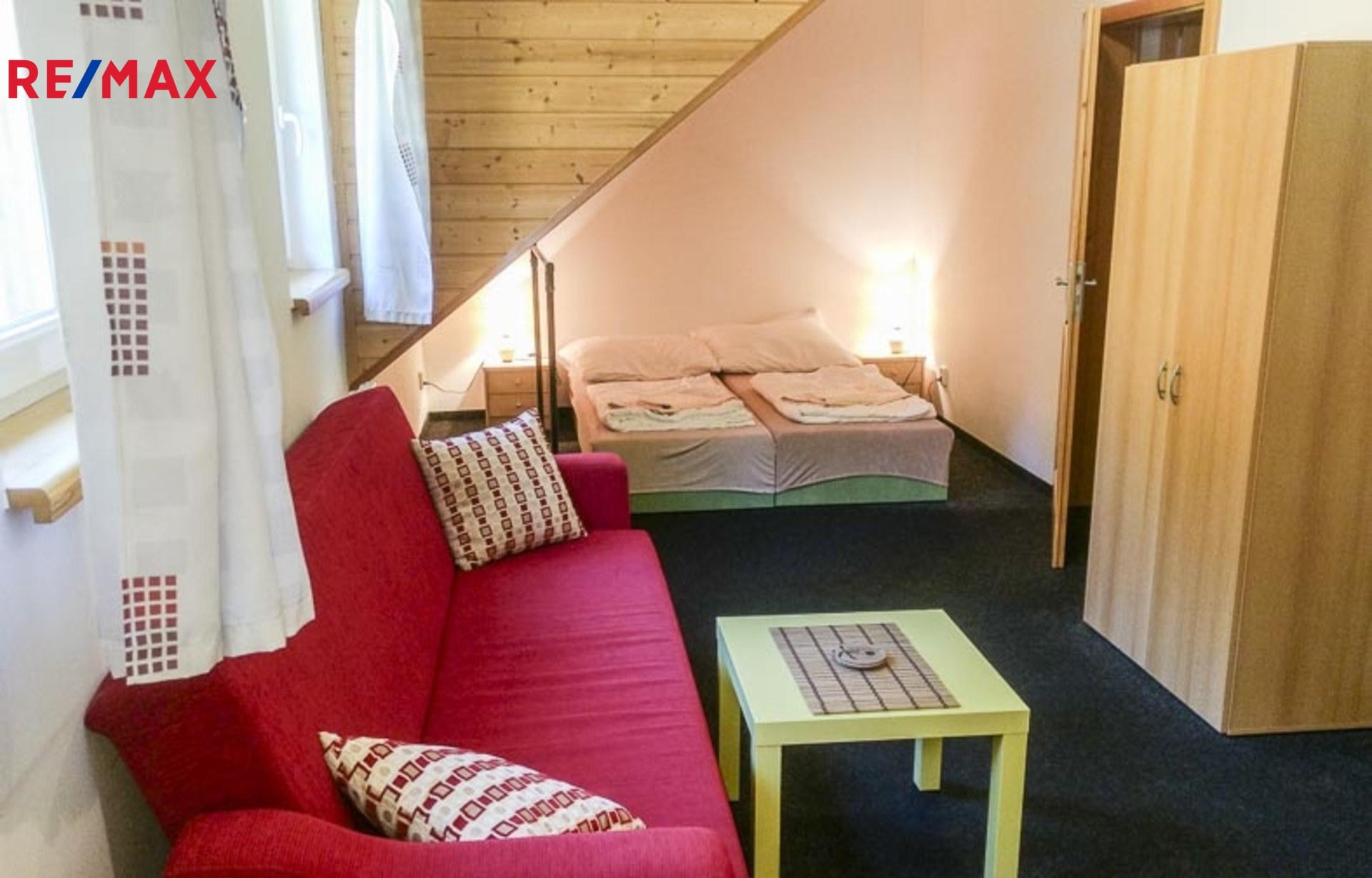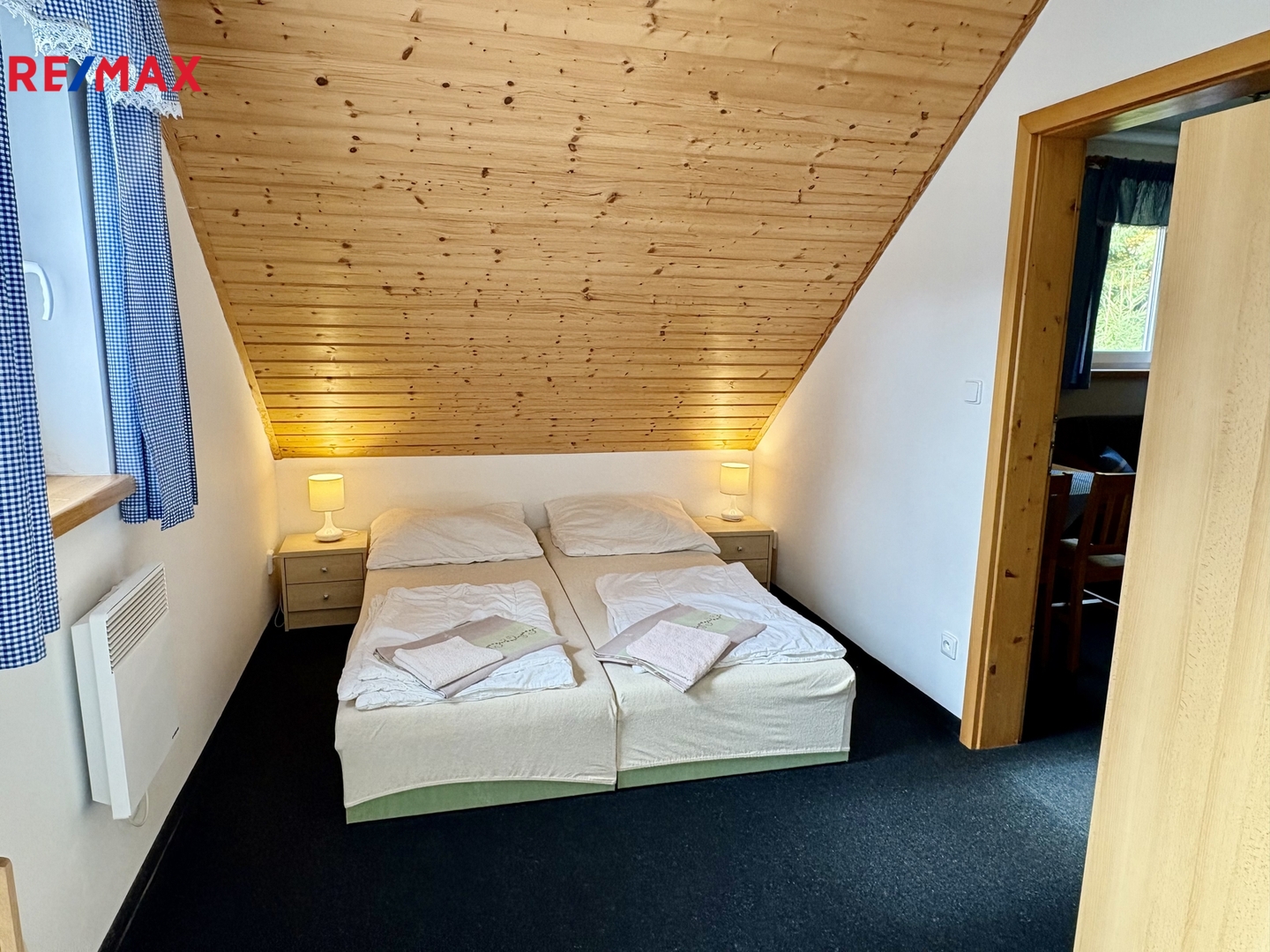 Nabízíme k prodeji apartmánový dvojdům, který je ideálním místem pro pohodové ubytování v atraktivní lokalitě obce Kůsov - Zadov - Šumava. Tento komerční objekt je zhotovený z kvalitní dřevostavby a nachází se ve velmi dobrém stavu. Svým návštěvníkům poskytuje možnost ubytování ve čtyřech a pěti lůžkových apartmánech o velikosti 3+kk či 2+kk v 1. NP a 2. NP. Z celkem osmi apartmánů se pronajímá sedm, zbývající jeden je využíván majiteli jako technické a pracovní zázemí pro celý objekt. Celková kapacita v provozovaných sedmi apartmánech je 33 lůžek. Každý apartmán je navržen tak, aby maximálně vyhovoval potřebám ubytovaných. Nachází se zde, plně vybavený kuchyňský kout (s chladničkou, vařičem, mikrovlnnou troubou a rychlovarnou konvicí) propojený s obývacím pokojem a dále dle typu jedna či dvě samostatné ložnice. V každém apartmánu je vlastní koupelna se sprchovým koutem, umyvadlem, toaletou, bojlerem a topným tělesem.