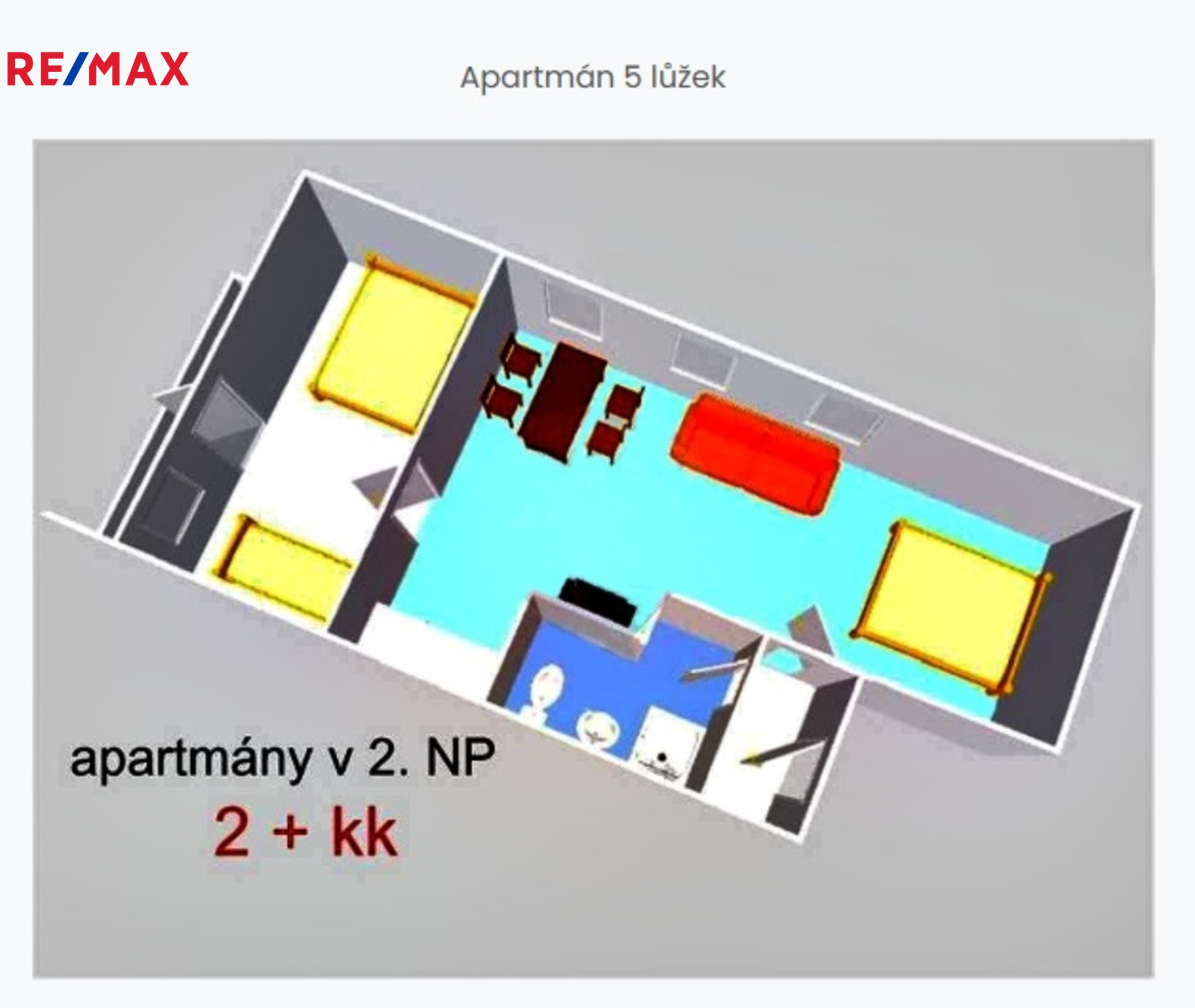 Tento apartmánový dvojdům je vhodný pro kombinaci trvalého bydlení s podnikáním, čímž se otvírá možnost zajistit obsluhu a údržbu apartmánového komplexu. Nebo pouze k podnikatelskému záměru. V tuto chvíli je apartmánový dům stále v provozu a v případě prodeje se předají všechny nadcházející rezervace. Plně vybaveno vše je součástí prodeje, takže přechod může být naprosto plynulý. V případě zájmu o prohlídku či více informací ohledně obsazenosti nás neváhejte kontaktovat.