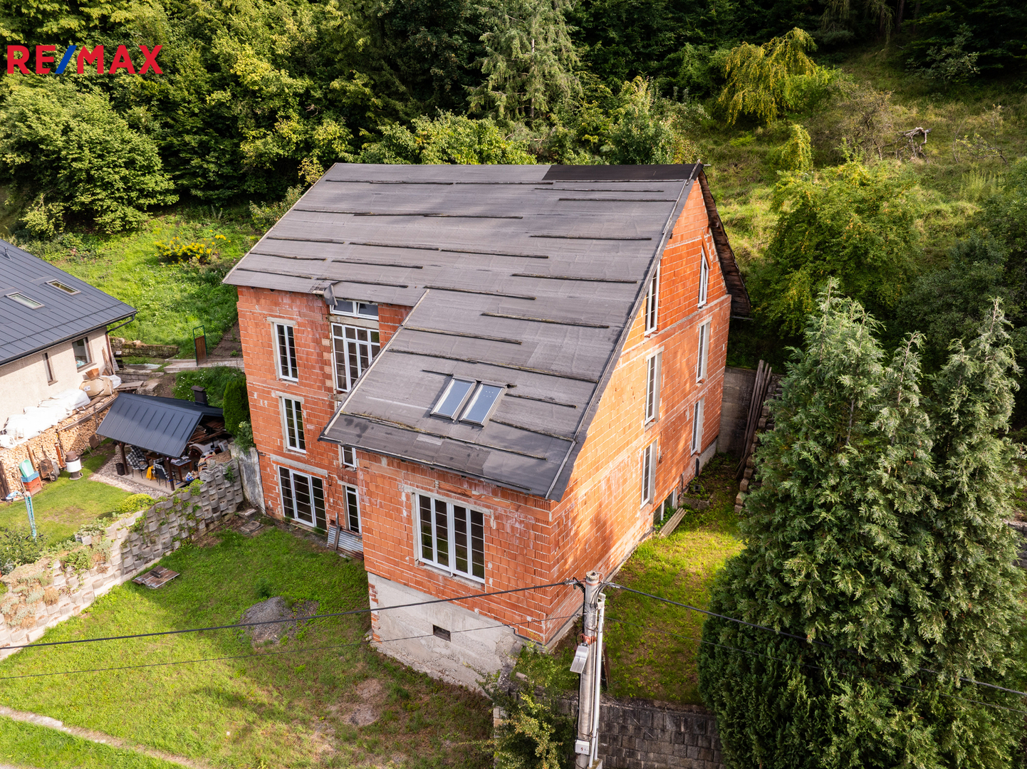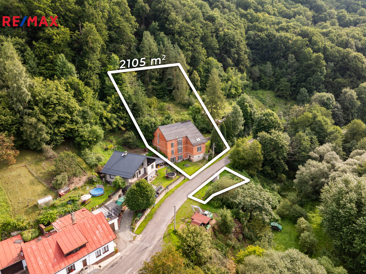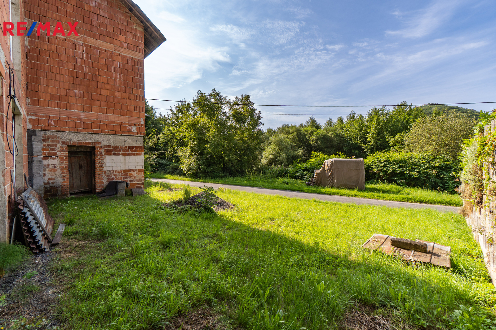 Celková výměra pozemků činí 2 105 m², z toho zastavěná plocha a nádvoří 335 m². Stavba je v současnosti v hrubém stavu, vybavena plastovými okny s izolačním dvojsklem. Na pozemek je přiveden obecní vodovod, stavba má vlastní čističku odpadních vod a je napojena na elektřinu (230V i 400V). V zemi před budovou je umístěna nádrž na propanbutan, připravená k napojení. Pro další parkovací místa je možné využít pozemek na druhé straně komunikace naproti stavbě, který je součástí prodeje.