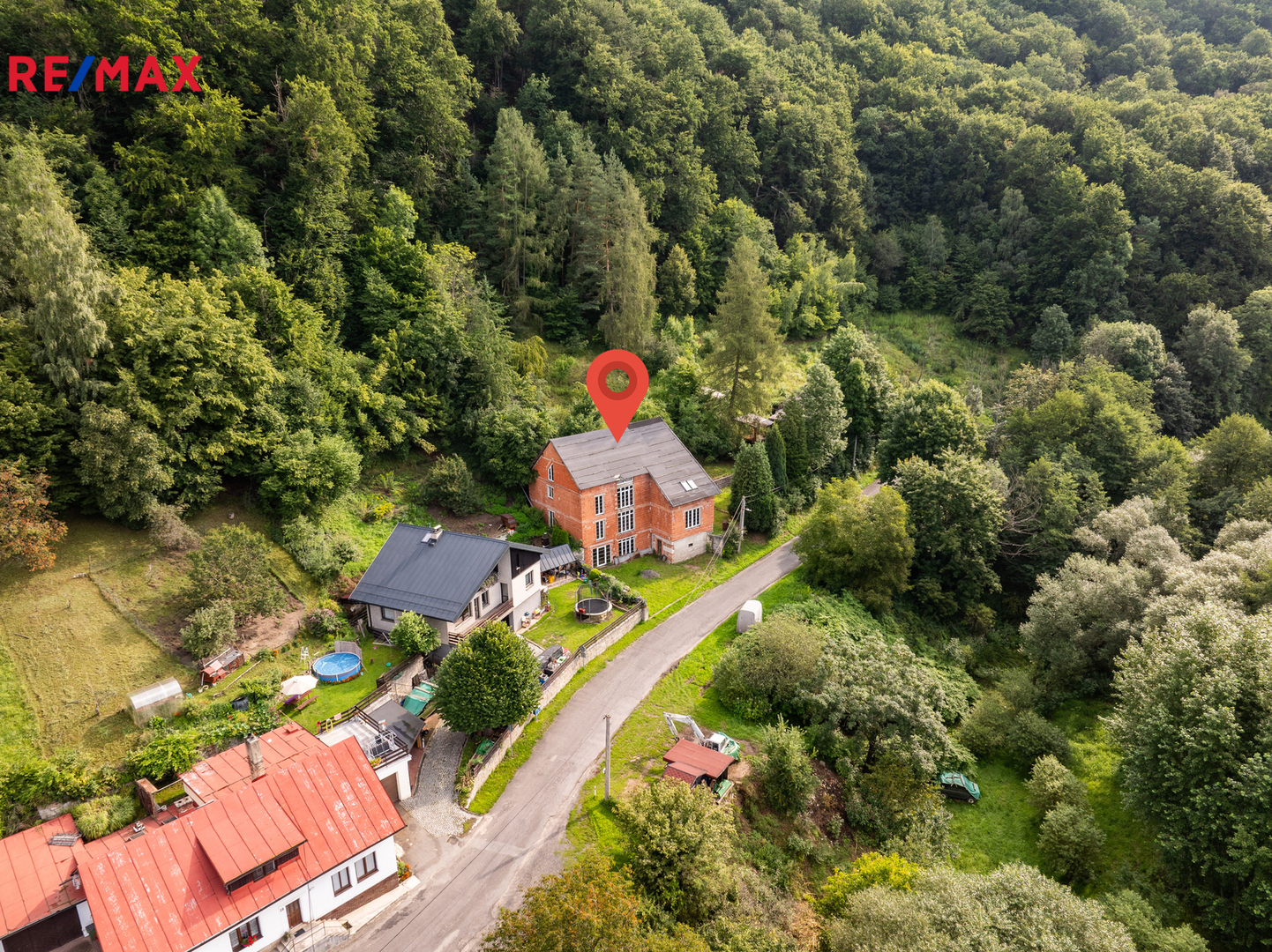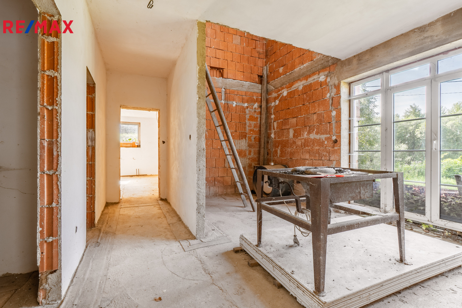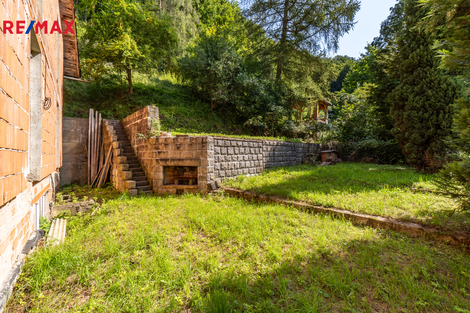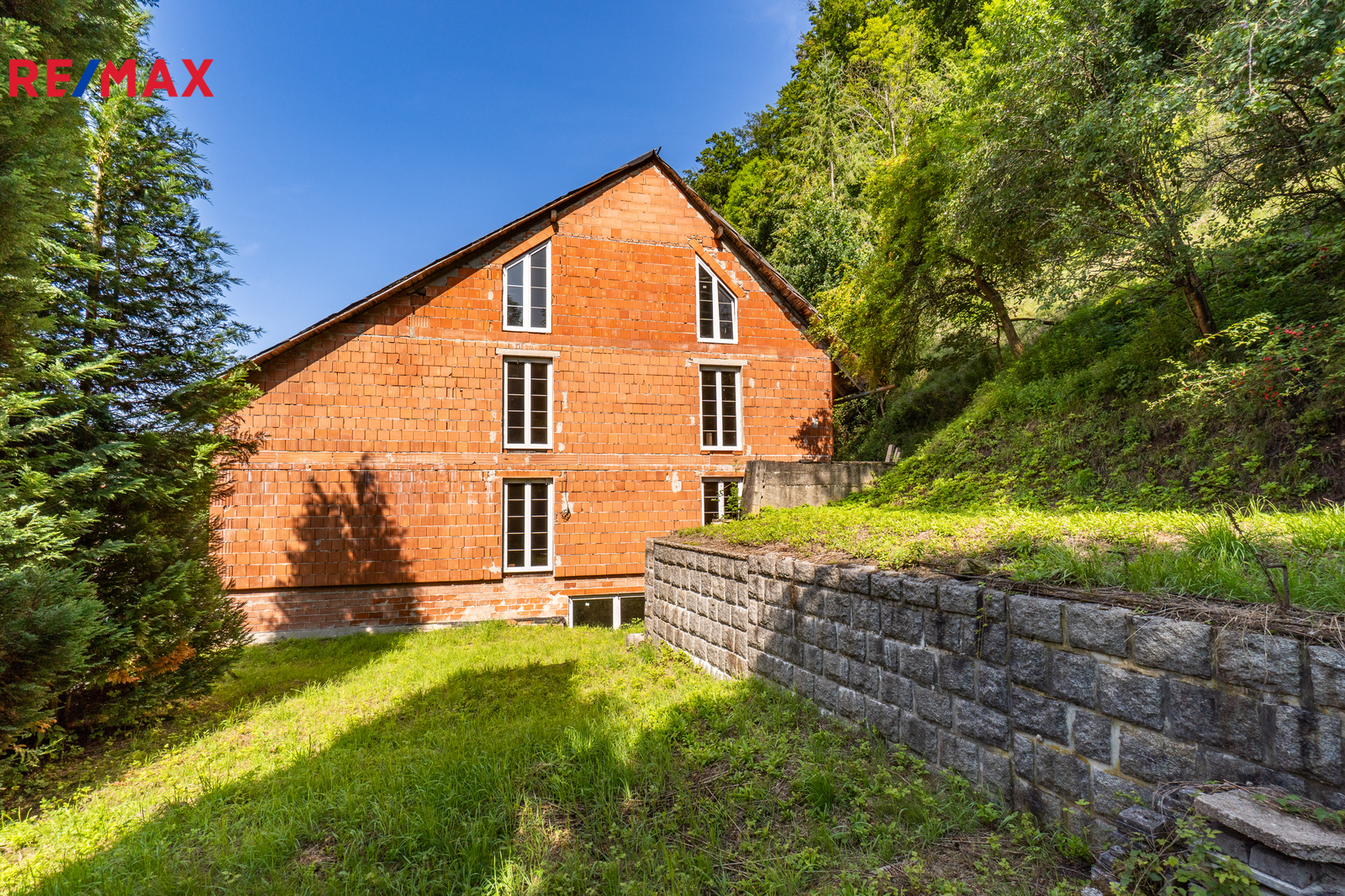 Celková výměra pozemků činí 2 105 m², z toho zastavěná plocha a nádvoří 335 m². Stavba je v současnosti v hrubém stavu, vybavena plastovými okny s izolačním dvojsklem. Na pozemek je přiveden obecní vodovod, stavba má vlastní čističku odpadních vod a je napojena na elektřinu (230V i 400V). V zemi před budovou je umístěna nádrž na propanbutan, připravená k napojení. Pro další parkovací místa je možné využít pozemek na druhé straně komunikace naproti stavbě, který je součástí prodeje.