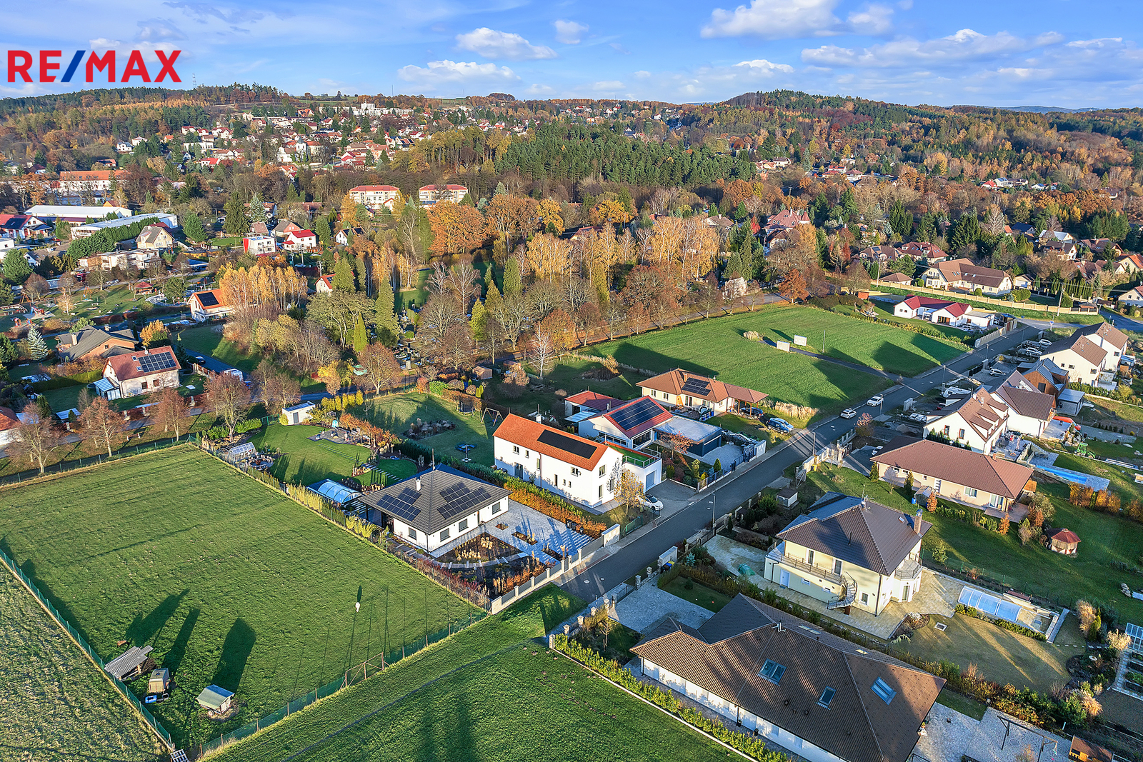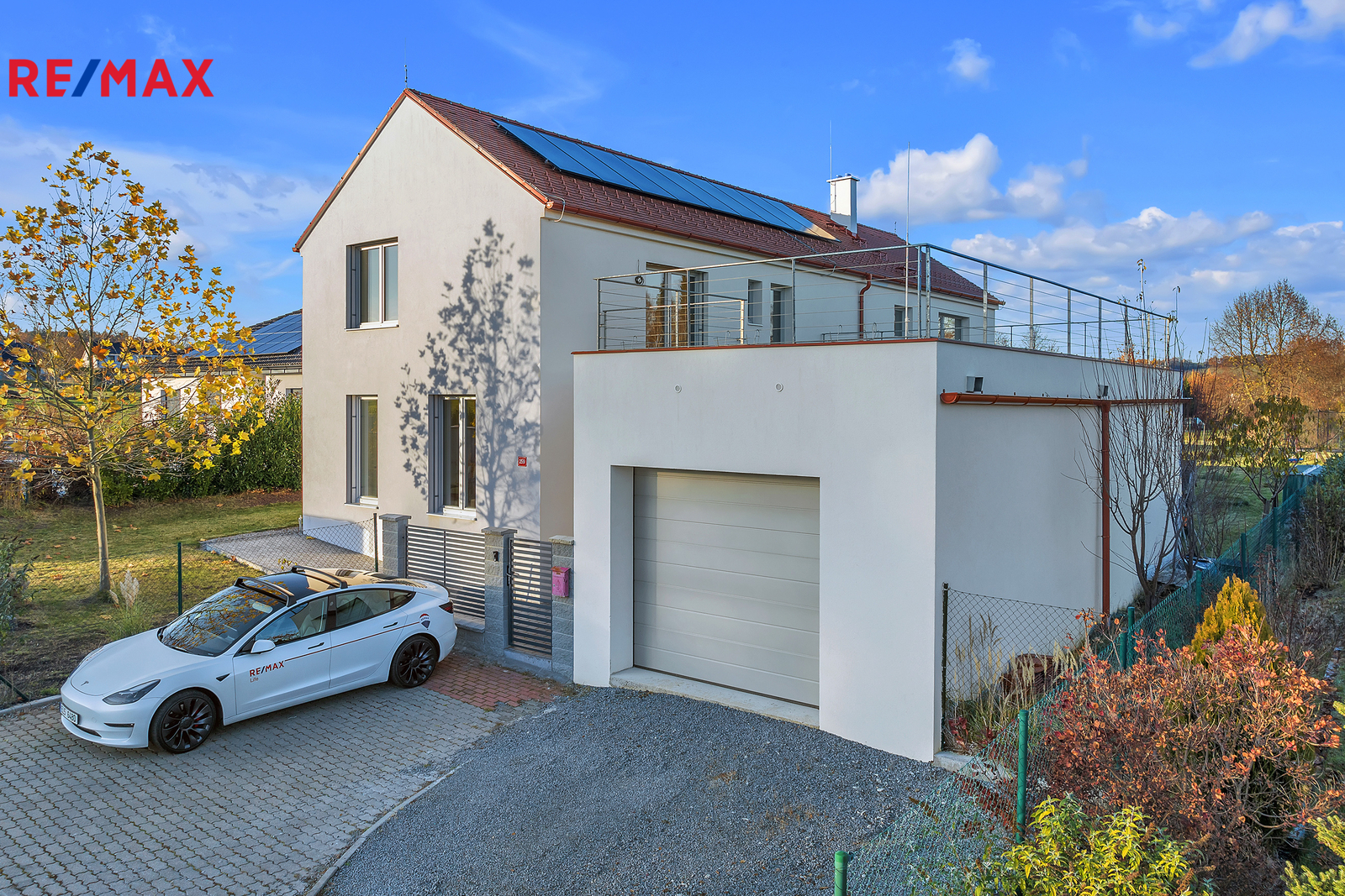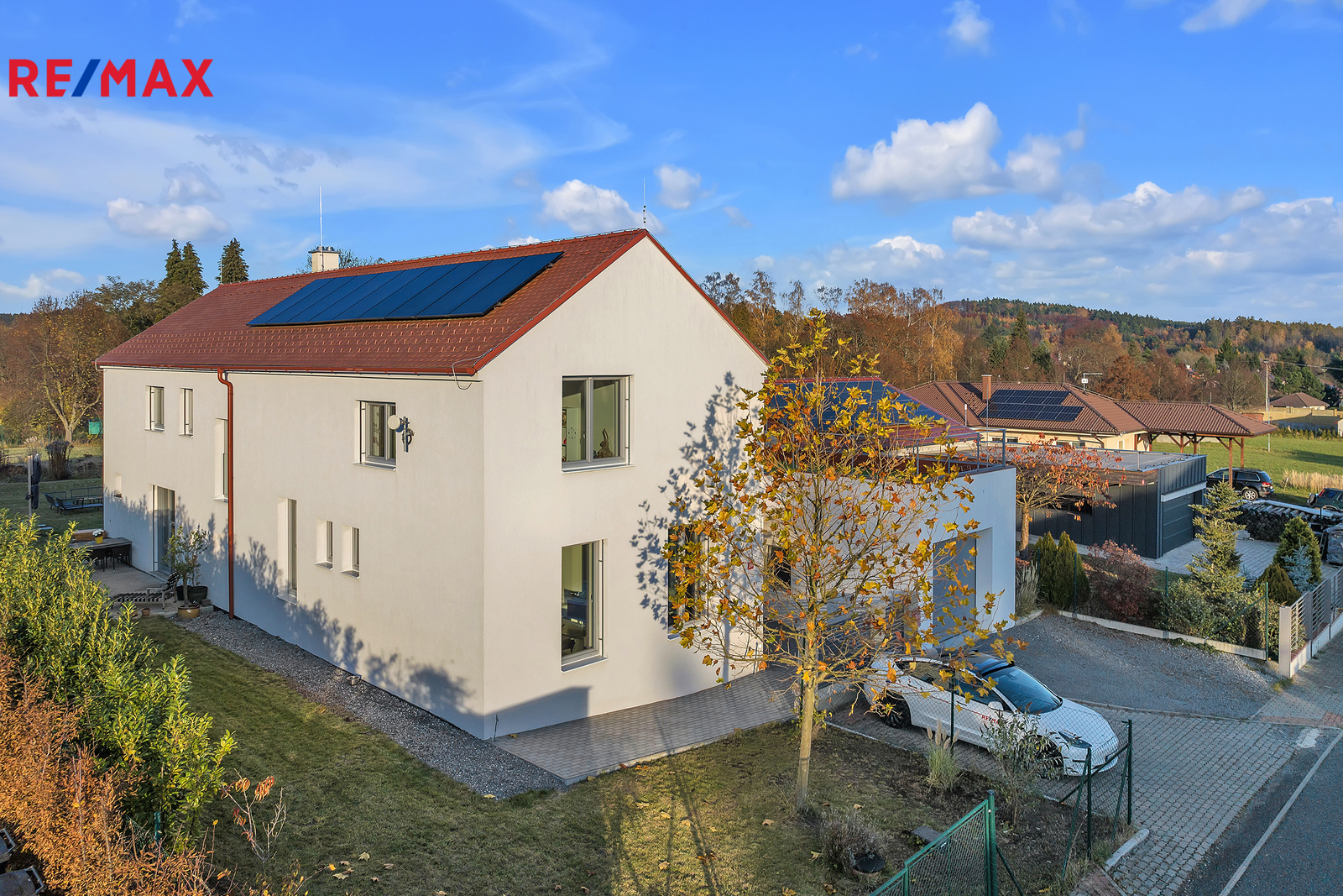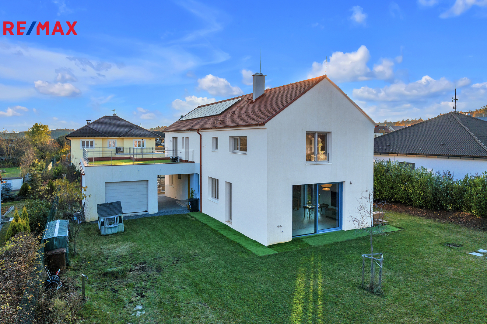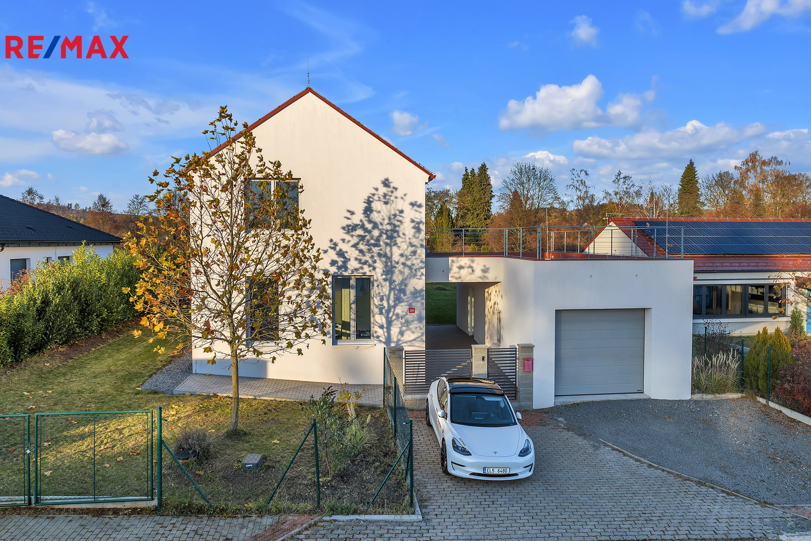 Dům je vybaven moderními technologiemi, jako je podlahové vytápění, fotovoltaická elektrárna s bateriovým úložištěm, předokenní žaluzie a dvě wallbox stanice pro nabíjení elektromobilů v garáži. Vytápění zajišťuje elektrokotel a je zde také připravena přípojka pro tepelné čerpadlo. Díky kvalitnímu zateplení a moderním technickým řešením je provoz domu velmi úsporný. Prostorný rovinatý pozemek poskytuje naprosté soukromí a dostatek místa pro případný bazén, wellness zónu či další zahradní úpravy.