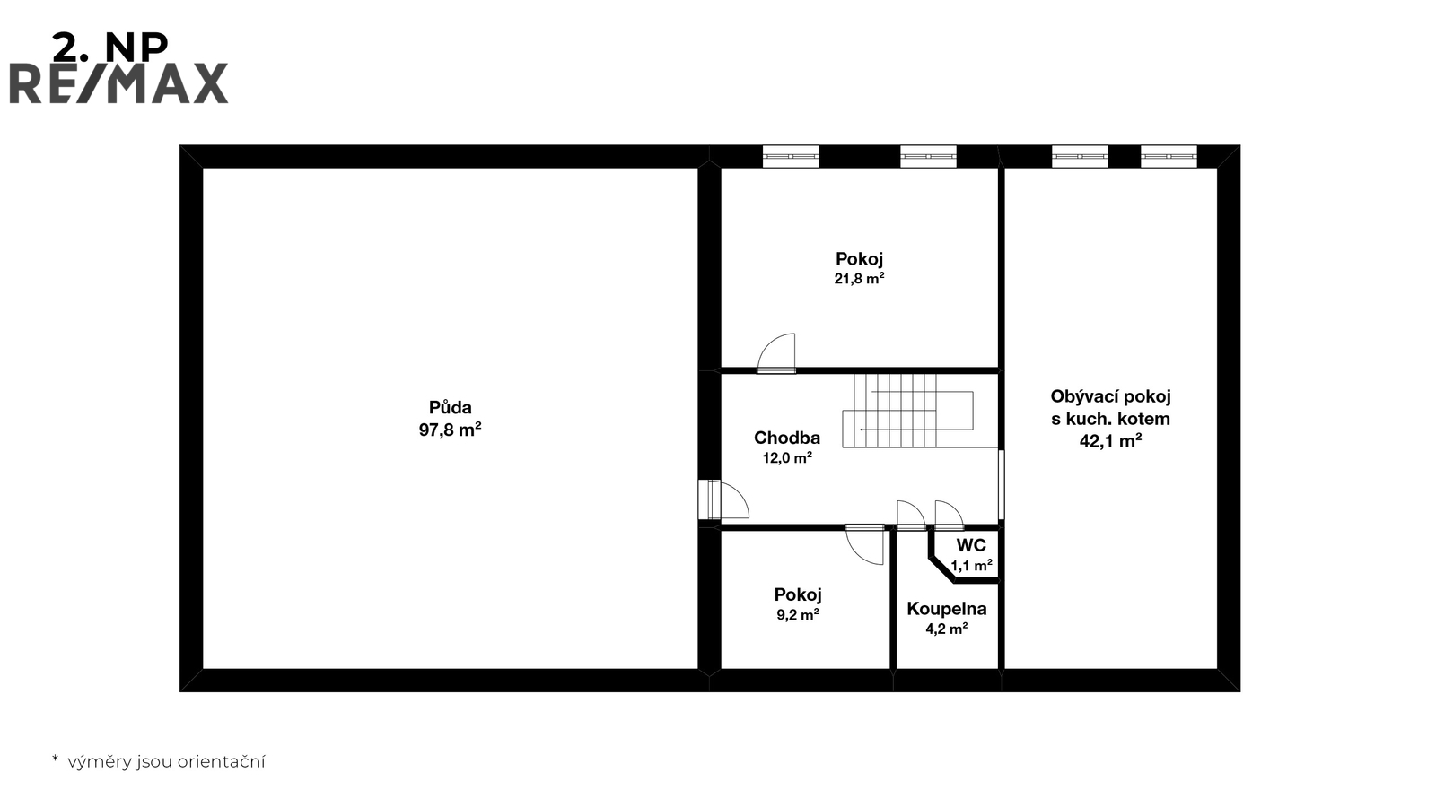 • Rekonstruované horní patro, připravené k okamžitému bydlení