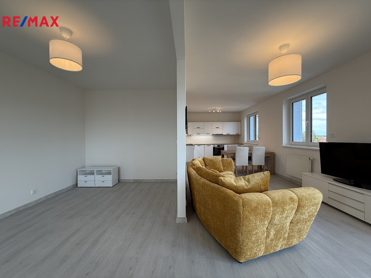 K pronájmu je bytová jednotka o výměře 54 m² s balkonem 8 m² a dispozicí 2+kk, umístěná ve 4. nadzemním podlaží zatepleného cihlového domu v ulici Jungmannova v Dobřanech.