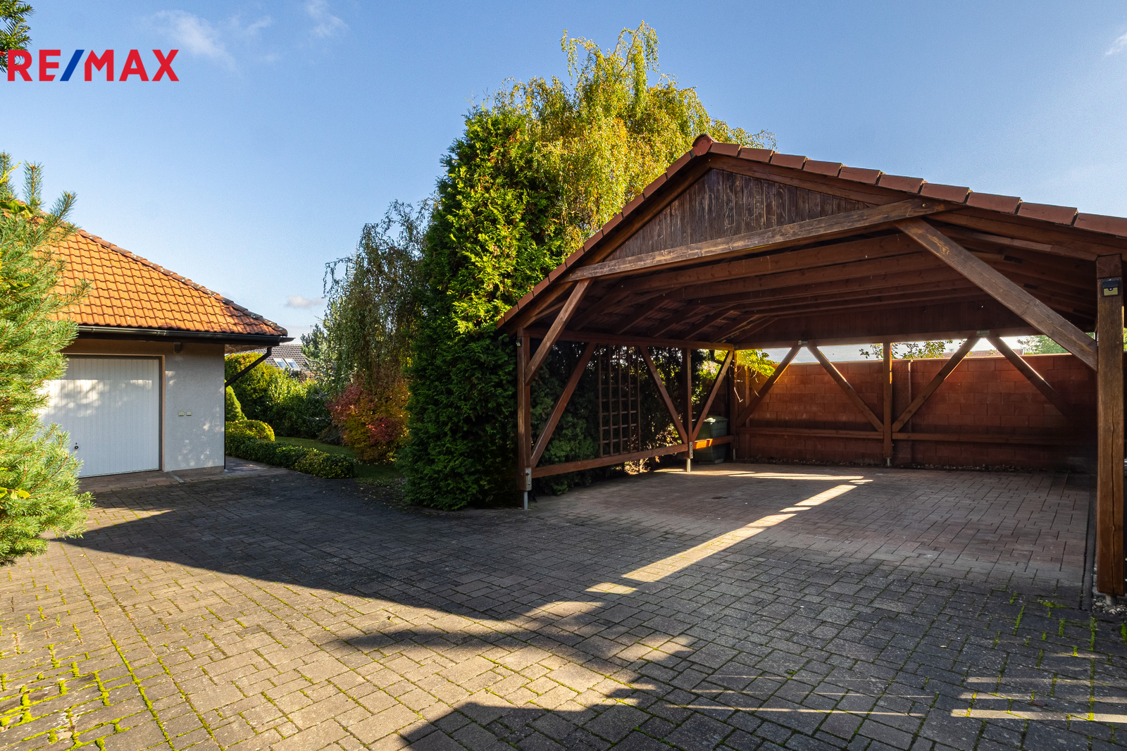 Prostorný, pečlivě udržovaný dům s garáží, krytým stáním pro 2 vozy a kouzelnou, plně vzrostlou zahradou. Ideální pro rodinu, která hledá klid, soukromí a pohodlné bydlení s výborným zázemím.