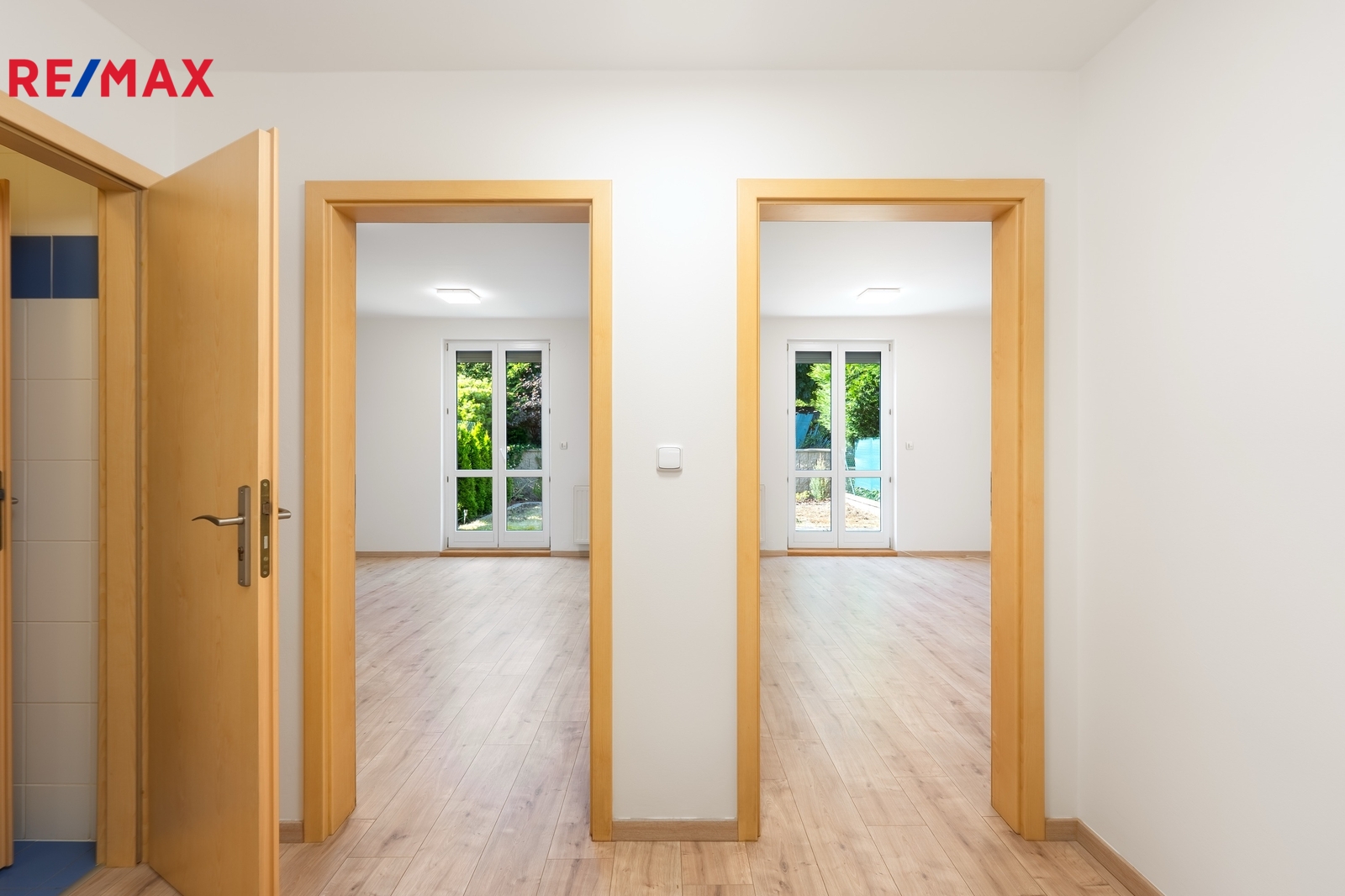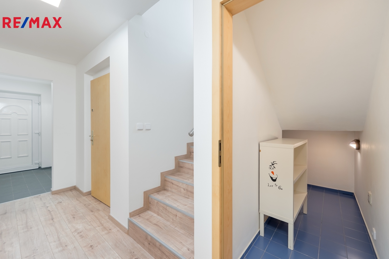 V přízemí naleznete garáž, velké skladovací prostory, vstupní chodbu, dva samostatné pokoje s výstupem na malou zahrádku o velikosti 59 m2, WC a malou komoru. V prvním patře se nachází vzdušný obývací pokoj s kuchyňským koutem a přístupem na terasu, prostorná ložnice, koupelna, samostatné WC a komora.