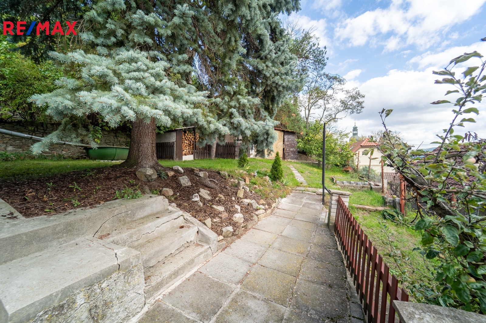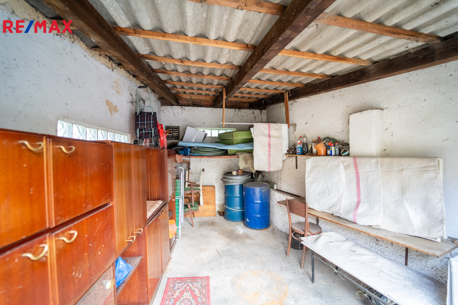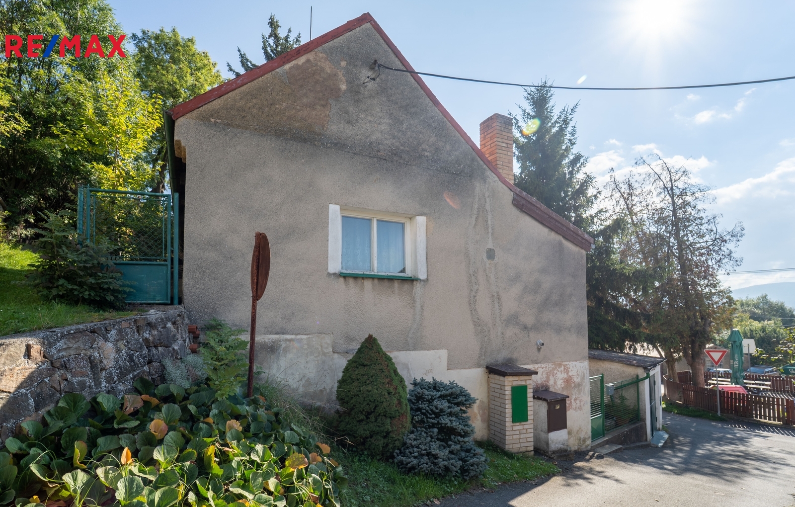 Pod domem u cesty je zděná garáž.
