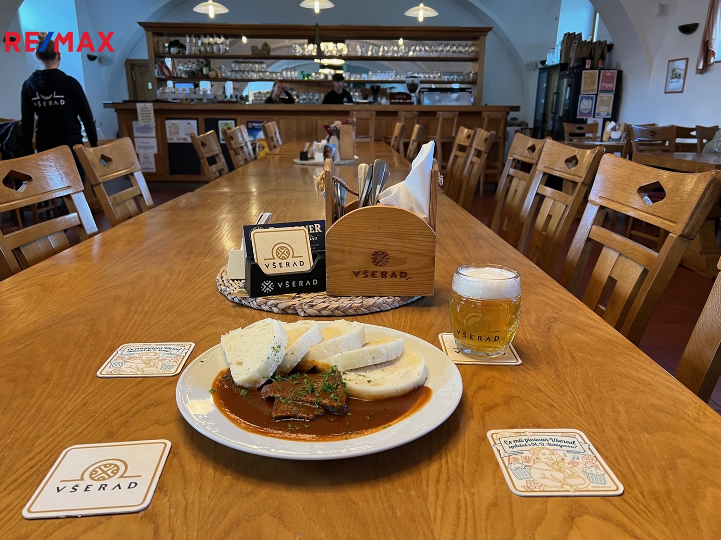 Domek je naproti hospody Na Růžku, nedaleko kostela sv. Bartoloměje, kousek od zámeckého dvora s pivovarem Všerad a muzeem Magdalény Dobromily Rettigové, a krůček od kavárny Tady a tak. V obci je též obecní úřad, školka, obchod Coop, cukrárna Somnium, fotbalové hřiště, zastávka vlaku i autobusu...