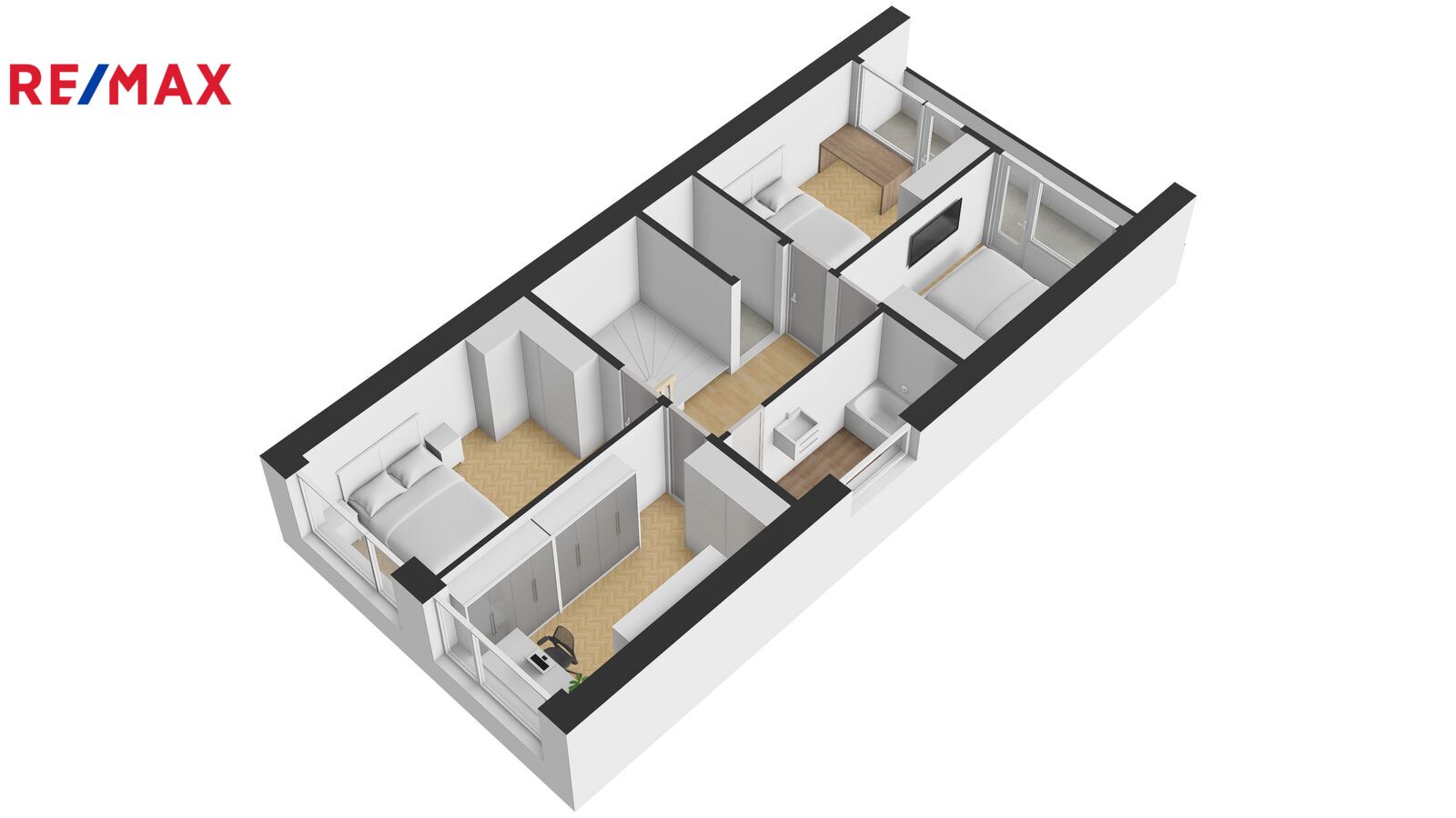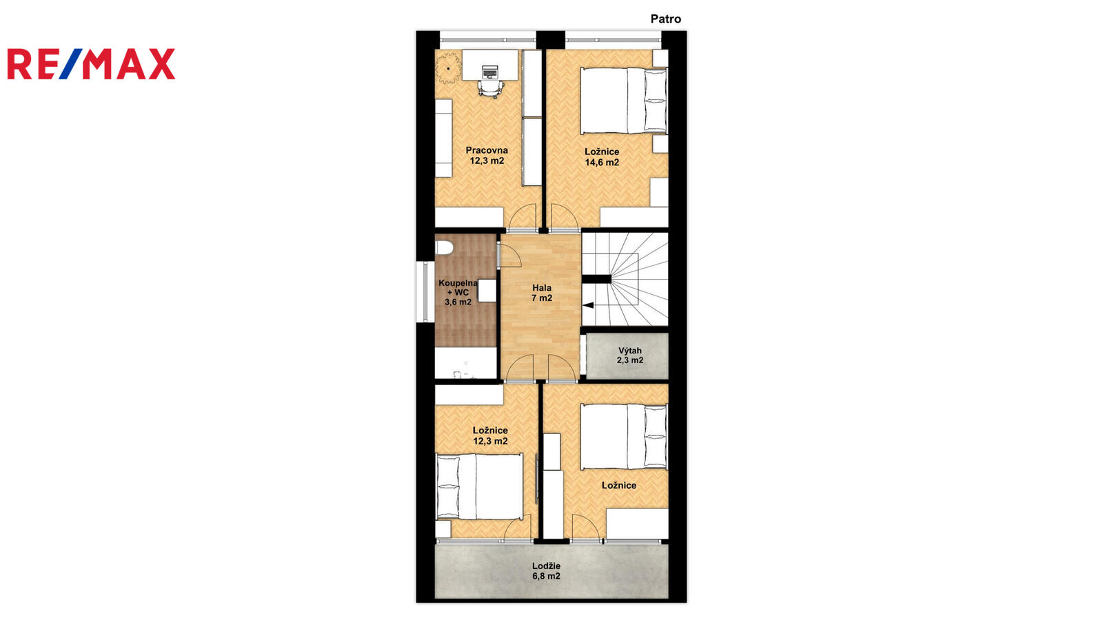 2. NP disponuje čtyřmi neprůchozími ložnicemi, lodžií, koupelnou s vanou a toaletou.
