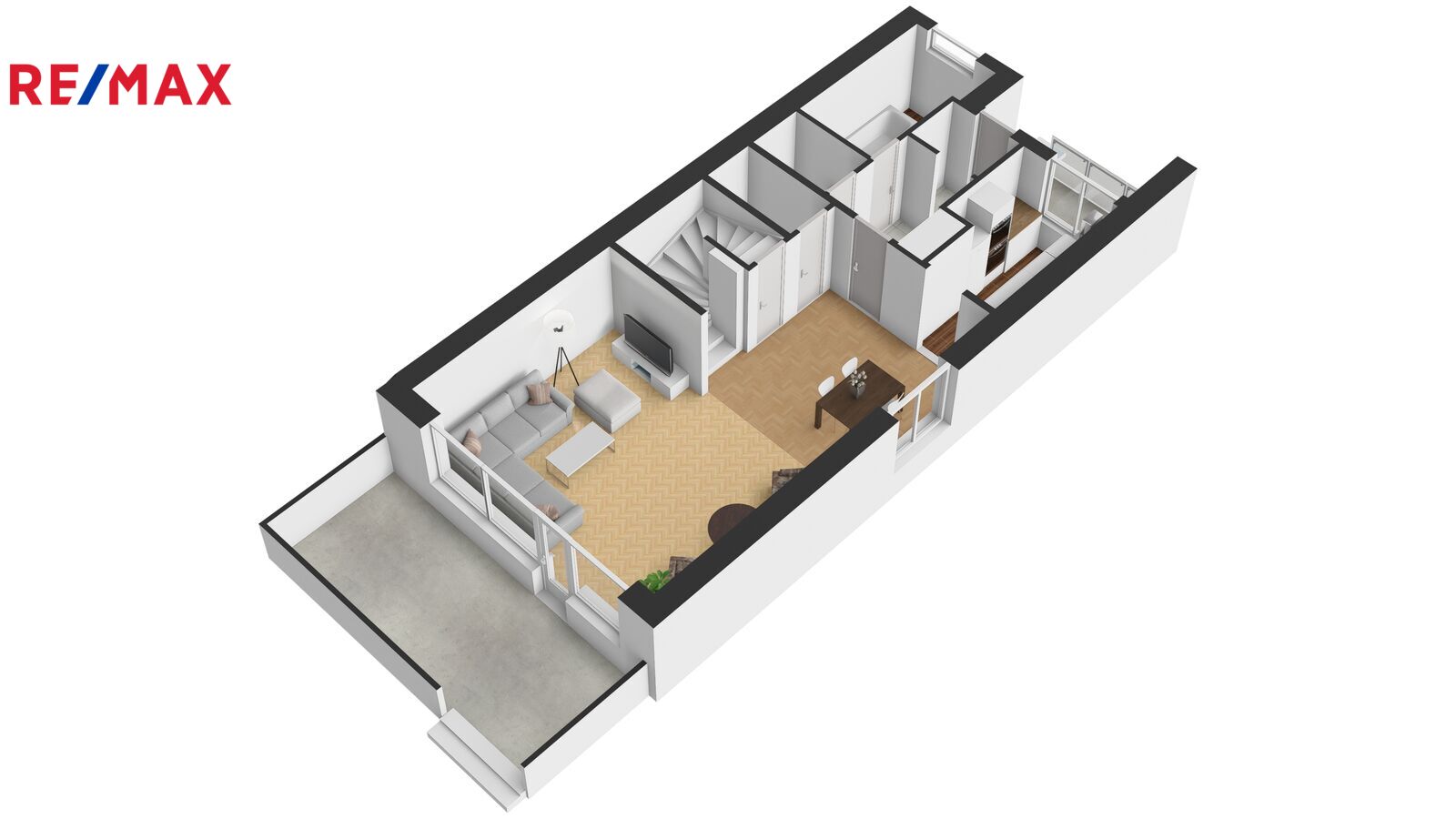 1. NP je k dispozici prostorný obývací pokoj s výstupem na terasu a navazující zahradu, kuchyň se základní výbavou úsporných vestavných spotřebičů, jídelna, vstupní chodba se zádveřím, koupelna s technickým zázemím a samostatná toaleta.