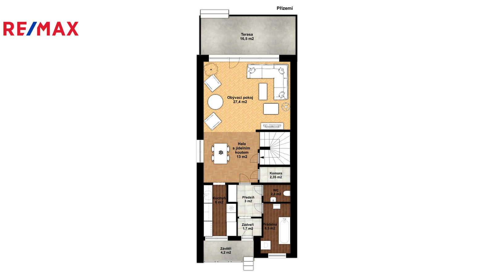 Podlaží jsou propojena schodištěm a nebo můžete využít domácí výtah.