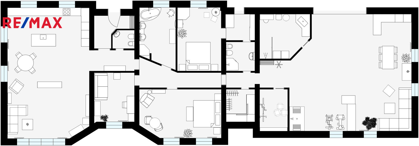 Dům má jedno nadzemní podlaží a díky své dispozici umožňuje flexibilní využití. Hlavní část tvoří prostorný obývací pokoj s jídelnou a kuchyní, ložnice a pracovna. Ve druhé části pak najdete další ložnici s vlastní koupelnou – ideální pro hosty, klienty, jako soukromé studio nebo provozovna. Pro milovníky prostoru je zde ještě velká víceúčelová místnost k vlastní realizaci. Na tu navazuje technické zázemí se sprchovým koutem a WC, kde je umístěna pračka a sušička.